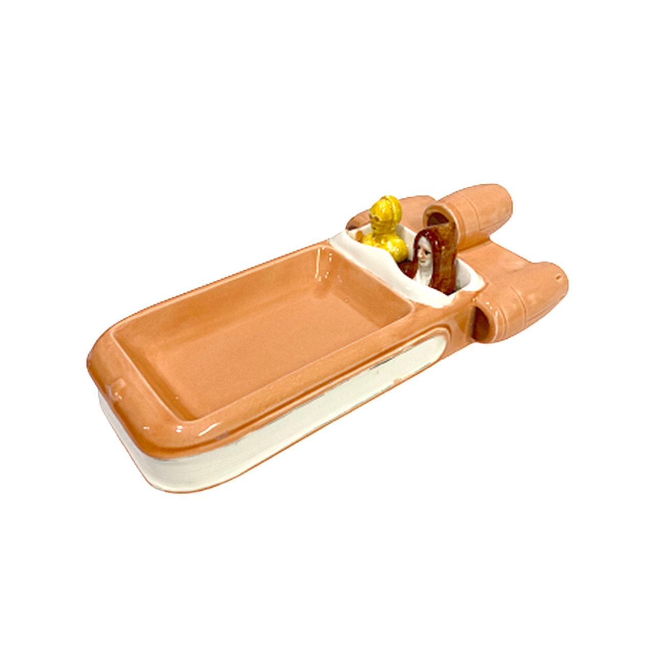 1980’s SIGMA社製のセラミック・ソープ・ディッシュです。『新たなる希望』シリーズから若きルークが所有した地上用リパルサークラフト、ランドスピーダーのボンネット部分を石鹸置きに見立てたナイス・アイテム!オビ・ワン・ケノービとC3-POが乗車して惑星タトゥイーンのムードを盛り上げます。激レア!