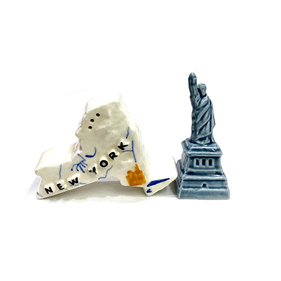 米パーククラフト社製のアメリカ50州を模った陶器製ビンテージ・ソルト&ペッパー。こちらはニューヨーク州と自由の女神とのセット。丸みのあるフォルムとフォントのセンスも合わさって最高のスーベニアと言えるでしょう!