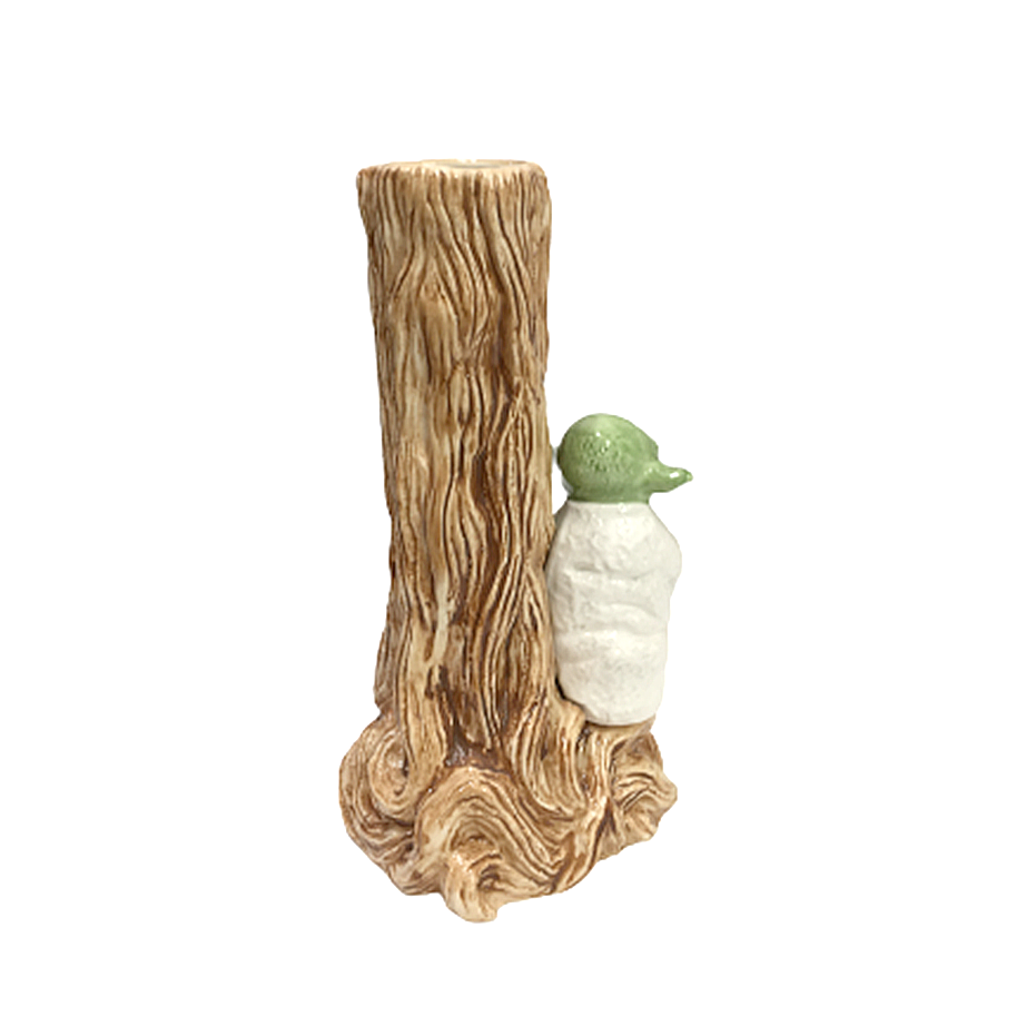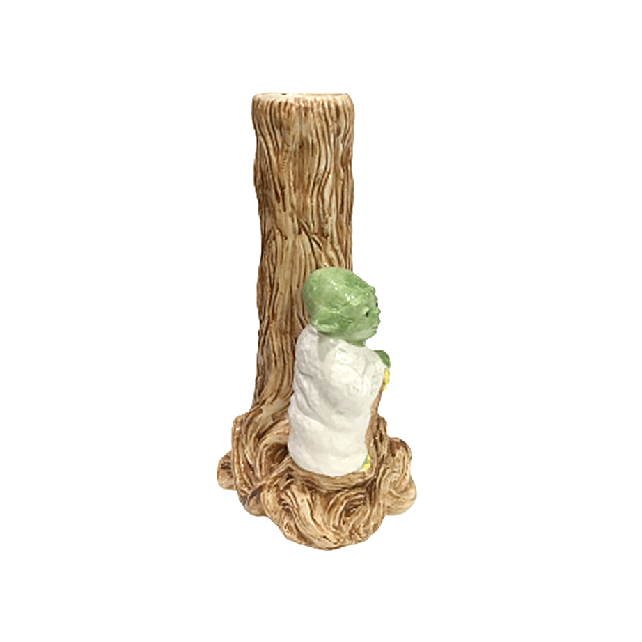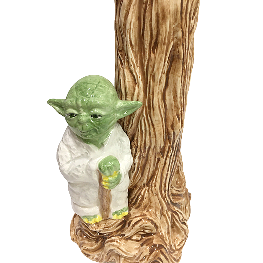 1983年代に発売されたSIGMA社製のセラミック・フラワー・ベースです。SIGMAシリーズのヨーダの中でも最大サイズのオブジェとしてレア度も高い一品。ダゴバでの登場シーンを彷彿とさせるギマーの樹木とヨーダのセット・ジオラマ風の花瓶でこれはもう生ける花を選びませんよ!もちろんヨーダの手にはギマー製の杖が。ヨーダとギマー昔から友達!ルークを見つめる優しいマスターの目、プライスレス!