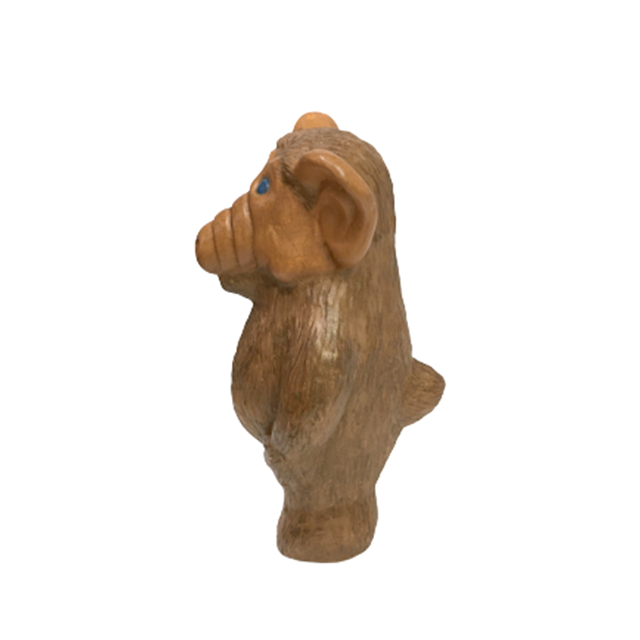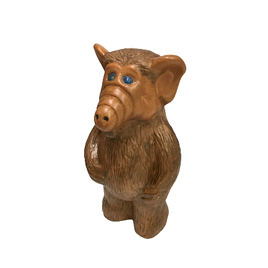 1990年と刻印されたアルフのハンドペインテッド・セラミック・フィギュアになります。80年代後半から出回った型のようで、濃淡薄めのブラウンでユルめに塗装されており、アルフののほほんとした表情と伴っていい湯加減に仕上がっています。アルフの吹き替えが所ジョージだった記憶、アルフは猫を食べるという記憶と共にリビングを見守ってもらいたい。右足後ろに1cm程の欠けがあります。