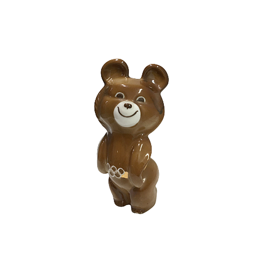 モスクワ・オリンピックのマスコット・キャラクター『こぐまのミーシャ』の陶器製の人形です。こちらは82年と刻印されたオリンピック後に登場したモデルのようで、オリンピックベルトもしっかりしめています。ミーシャはスマイルとポーズ!これに尽きると思います。
