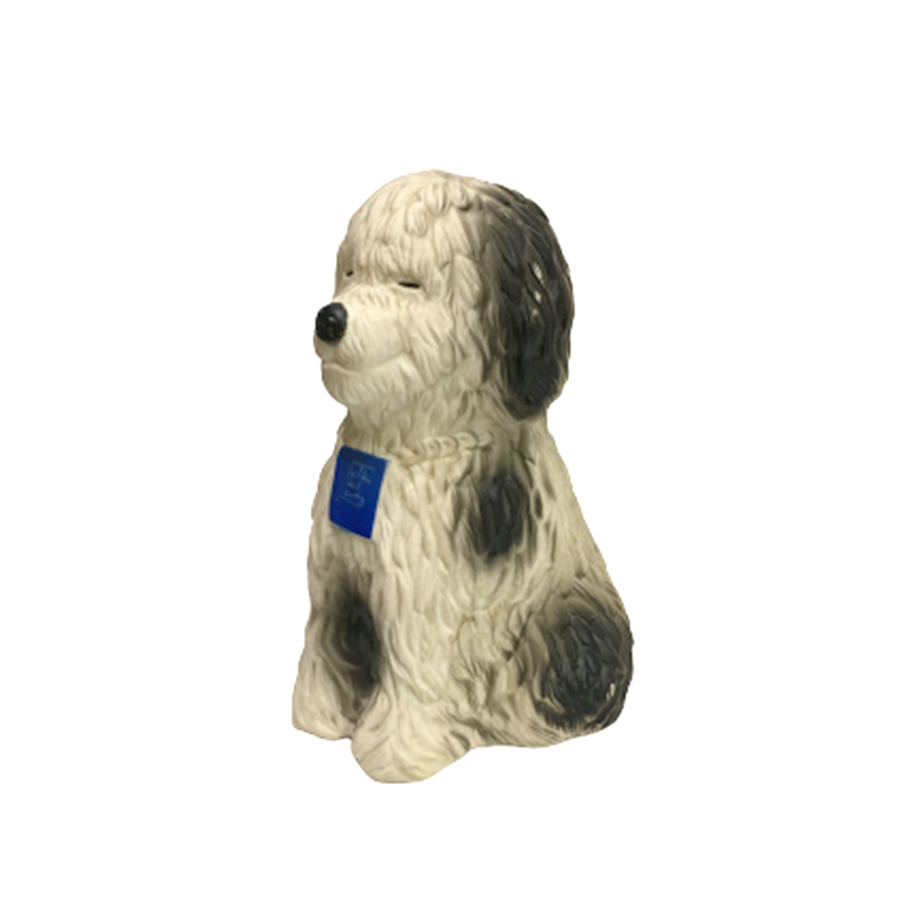 アメリカの金融機関『Pacific First Federal Saving』のノヴェルティ・バンクになります。犬種はオールド・イングリッシュ・シープドッグ?ですかね?シャギー・スタイルの牧羊犬の風貌ですが、イタリアのベルガマスコにも見えますね!とにかくフォルムも表情も穏やかで申し分ないんじゃないでしょうか。マイナー・アドバタイジング・アイテムの為なかなか市場に出てきませんが、個人的好みど真ん中なので是非とも入荷したかったアイテムです。底蓋もしっかりあります。