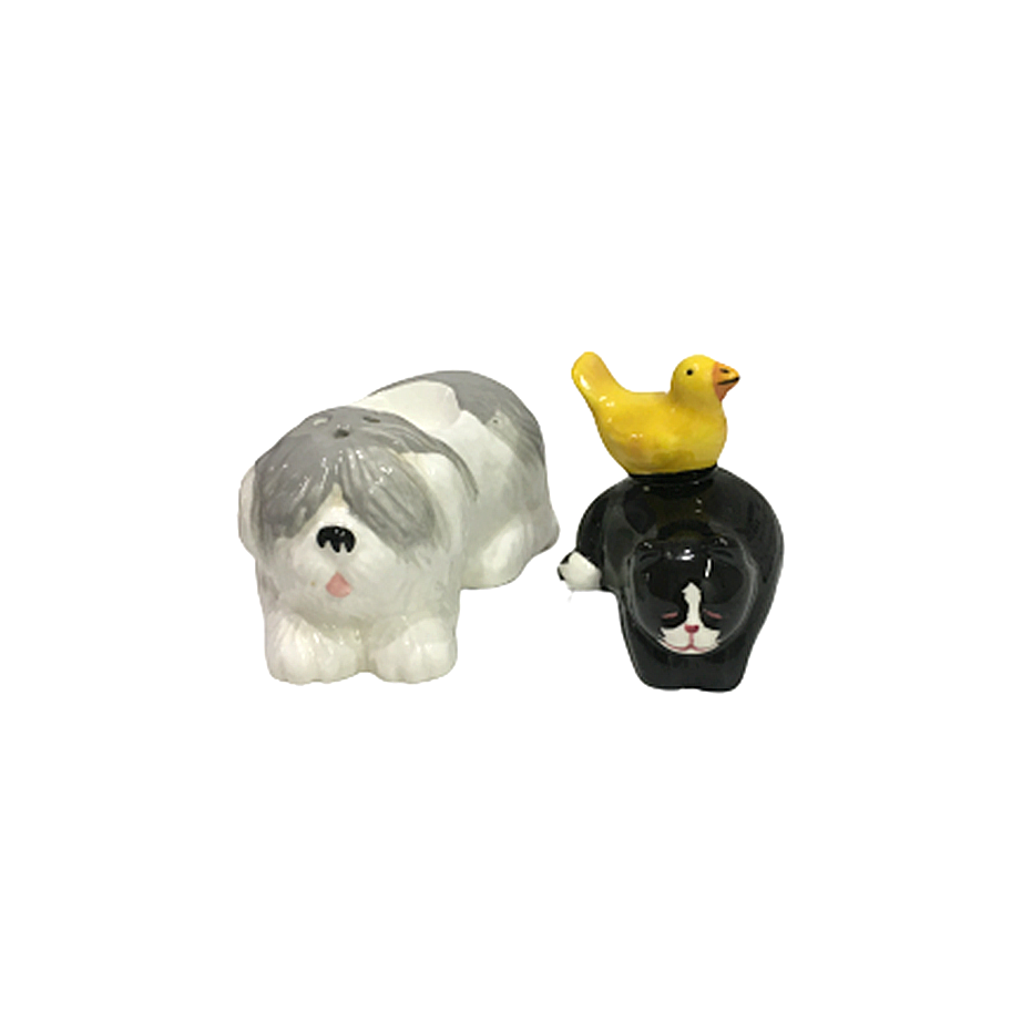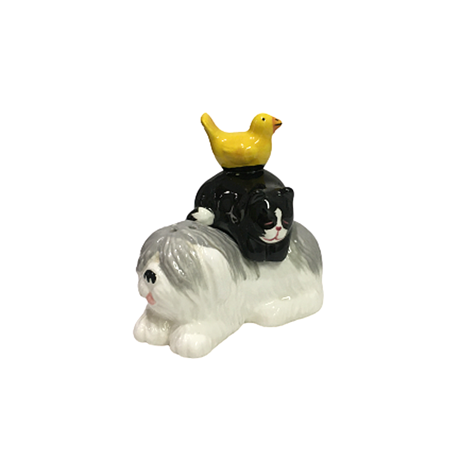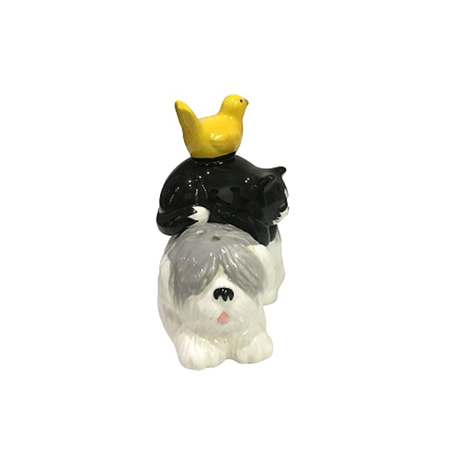 STACKED CAT, DOG & BIRD SALT & PEPPER VINTAGE