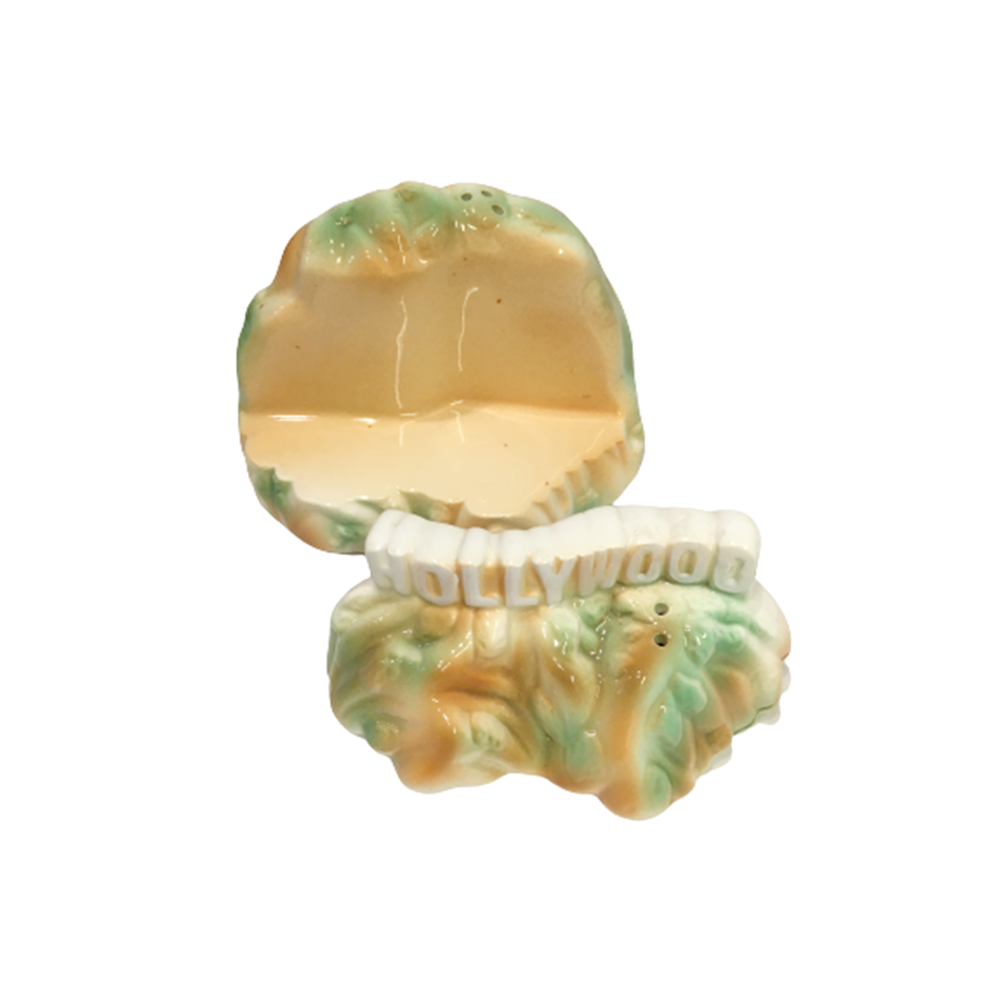 ロサンゼルスの象徴ハリウッド・サインのミニチュア・スーヴェニア的なソルト&ペッパーです。配色もグッドだしセラミック製なのでヒルズ部分に光沢があってめちゃくちゃキュート!山の部分が割れてソルトとペッパーに分かれます。米国を代表するランド・マークをお部屋にセッティング、映画を観る際にチラチラと視線に入るようにしてアメリカナイズしていきましょう!