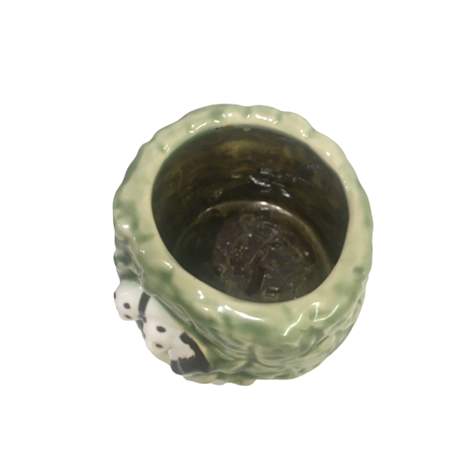 PANDA BEAR & BAMBOO PLANTER GREEN ROCKS VINTAGE CERAMIC