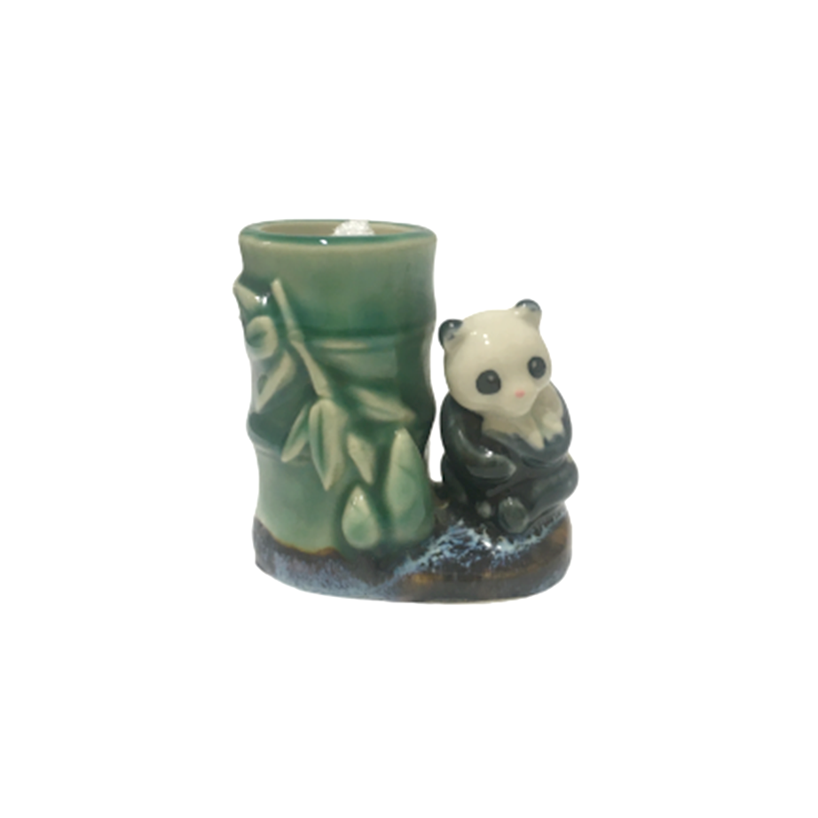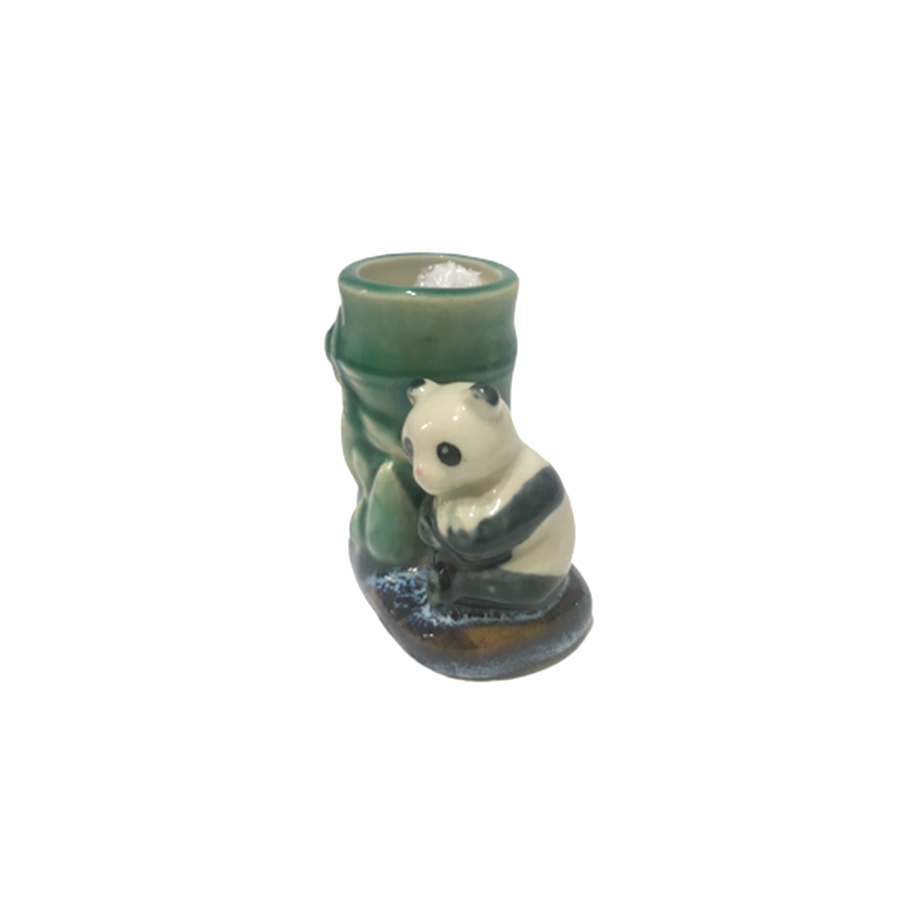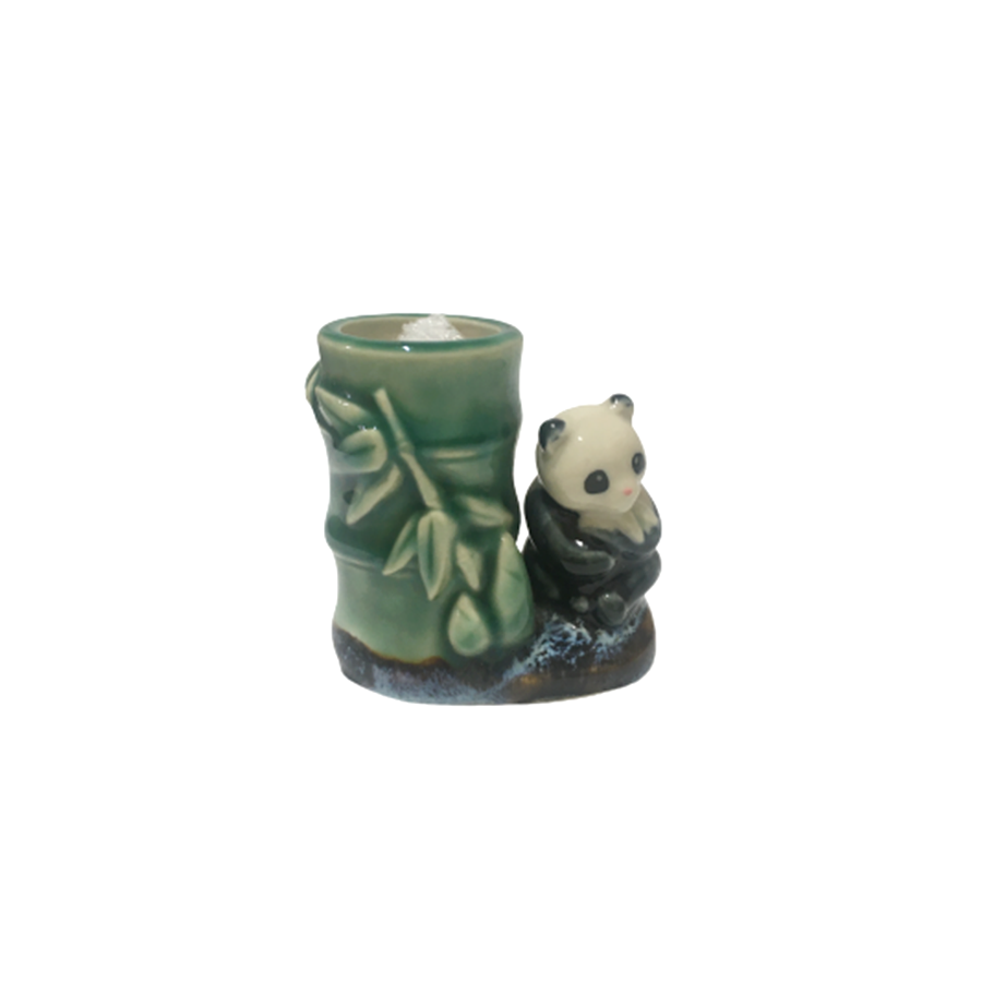 パンダと竹の陶器製爪楊枝入れになります。発色の良いバンブー・グリーンにパンダ・カラーが冴えまくり、陶器の温かさを経由したことで奇跡の仕上がりに!食事後の癒し。