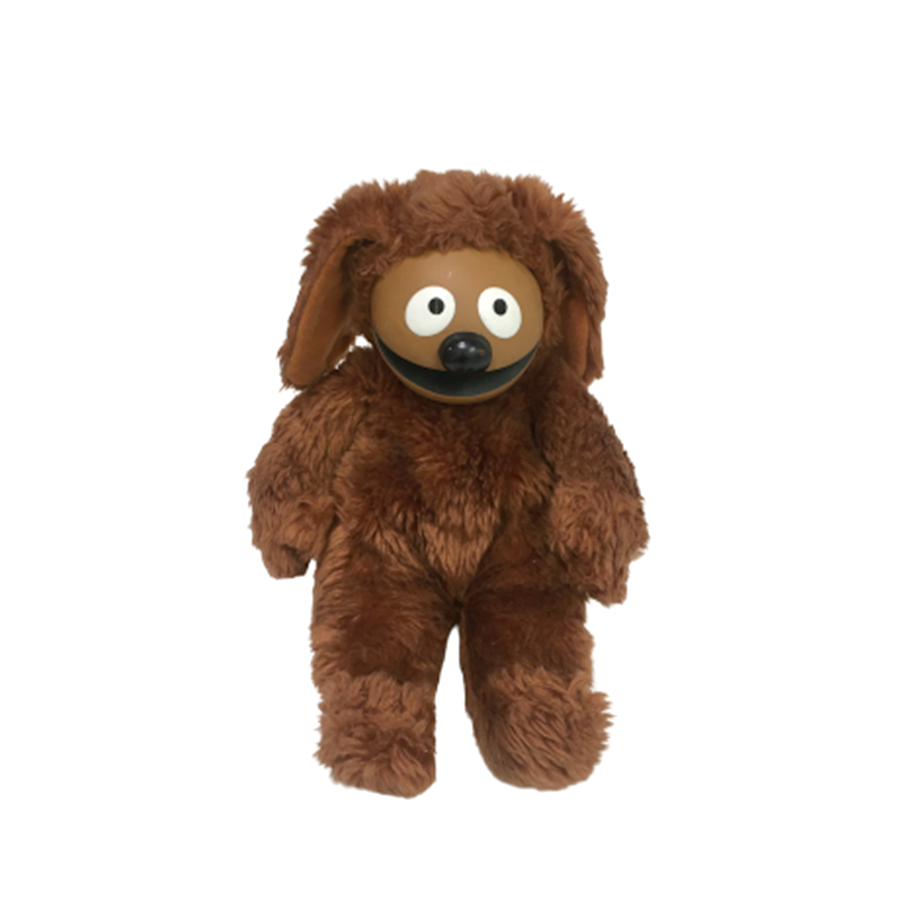 世界のジム・ヘンソンを代表する作品『マペット・ショー』から、人気の雑種犬ロルフの89年製オフィシャル・プラッシュ・ドールになります。顔の部分はプラスティック製でより実物に近い仕上がりに。オリジナルのロルフよりはスリムですが、サイズ感共に現存するロルフ・トイの中では最高傑作ではないでしょうか?右目に細い傷が入っており、鼻も少しペイントがハゲています