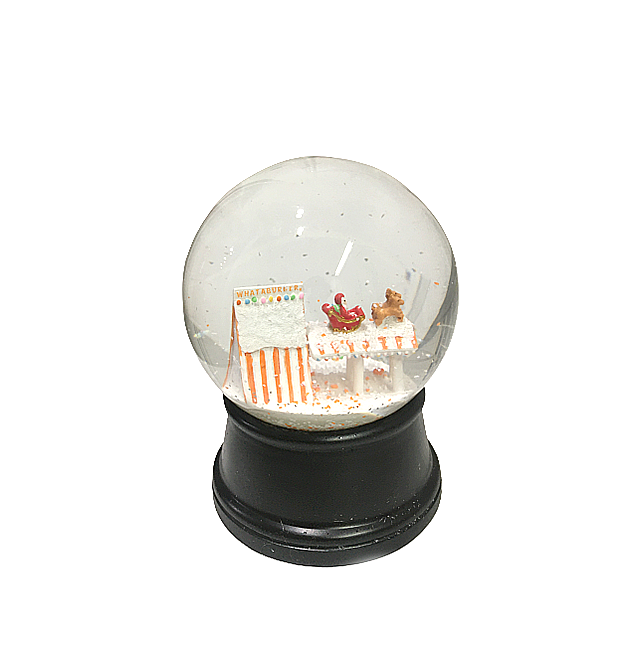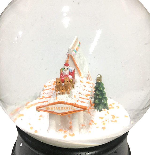 アメリカ合衆国テキサス州に拠点を持つハンバーガーが主力のファストフード・チェーンWHATABURGER(ワッタバーガー)。鮮やかなオレンジ×ホワイトのボーダー・カラーとダブリュのロゴが象徴的!CHEWIIEのロンTのネタとしても店舗デザインを引用しましたが、こちらはその店舗とサンタがコラボしてしまったウルトラ最高なスノードームになります。スノードーム自体もどっしりと重厚感がありビンテージ・スタイルのレトロ・デザインで仕上げた米アドバタイジング・アイテムとしてはかなり強烈にイカしてるアイテムとなります!店主も当然購入済み!大メリークリスマス激しくおすすめします〜。