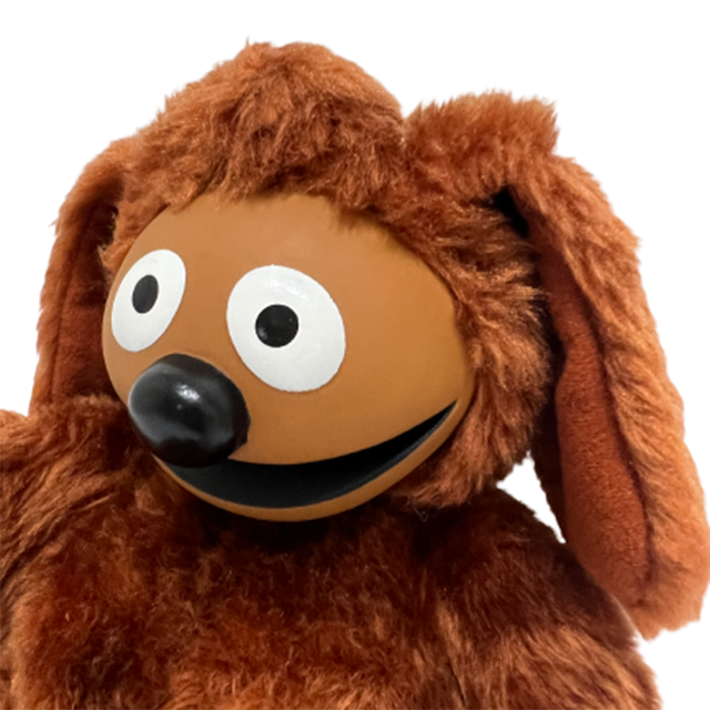 世界のジム・ヘンソンを代表する作品『マペット・ショー』から、人気の雑種犬ロルフの89年製"Direct Connect"社製オフィシャル・プラッシュ・ドールになります。顔の部分はプラスティック製でより実物に近い仕上がりに。オリジナルのロルフよりはスリムですが、サイズ感共に現存するロルフ・トイの中では最高傑作ではないでしょうか?グッドコンディション。