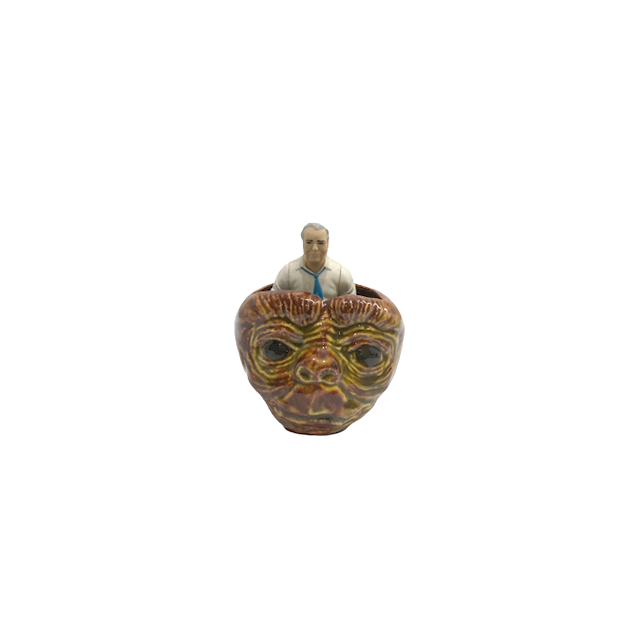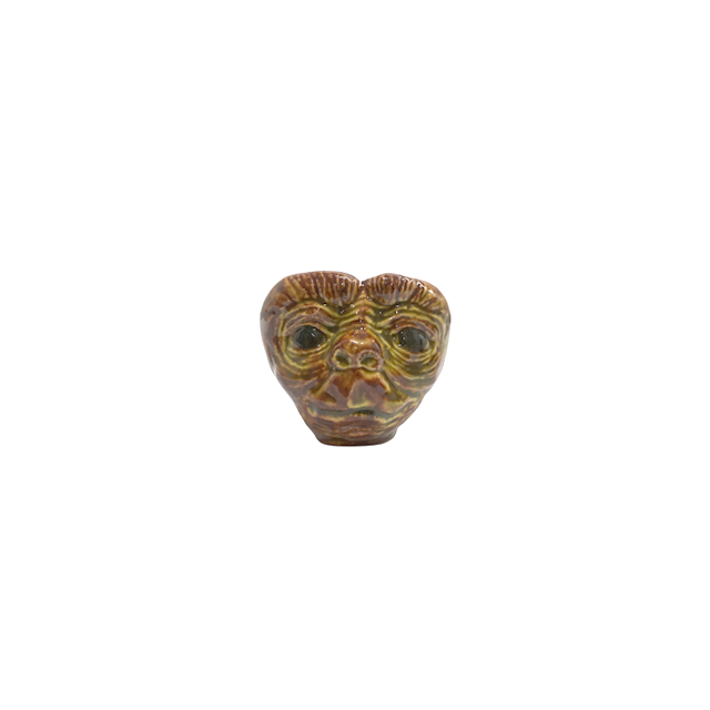 E.T.のハンドメイド製セラミック・カップになります。造形が秀逸というか表情もなんともいえない優しさで釉薬の艶も相まって絶妙な仕上がりに。フォルムもサイズ感もバッチリなのでオブジェにして毎日お祈り、または脳天に小物をしまう感覚でも最高が訪れます。