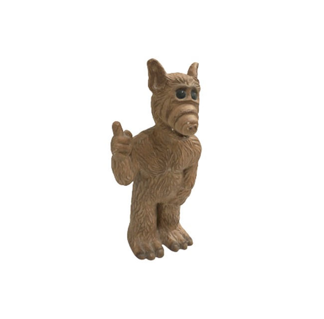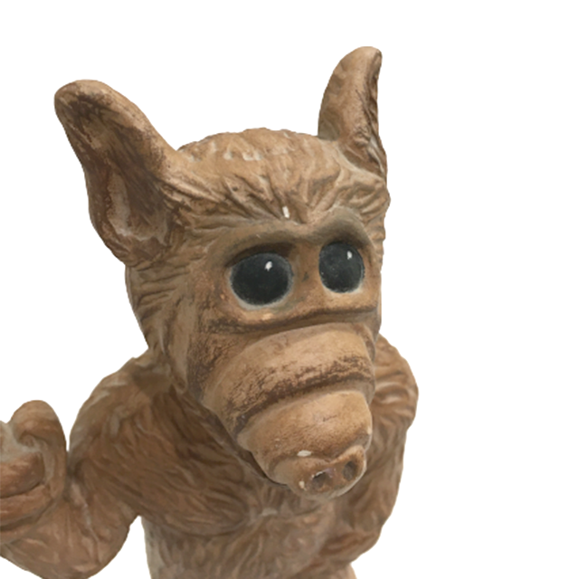 UFOごと落下してきた宇宙人がアメリカで居候生活を始めるという80'S 米テレビ・コメディの金字塔「ALF」。こちらは80年代のハンドメイド製セラミック・スタチューになります。しかもボリューム満点のビッグ・サイズ!4頭身ボディはビッグフット的謎のディフォルメが進んでいて最高。小顔に調整されたマスクも最高。セリフはもちろん「ノープロブレム」できまりです。