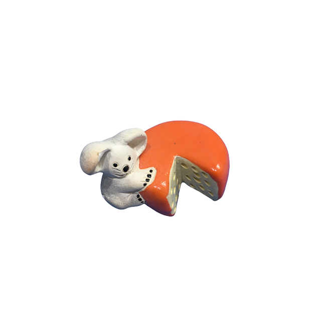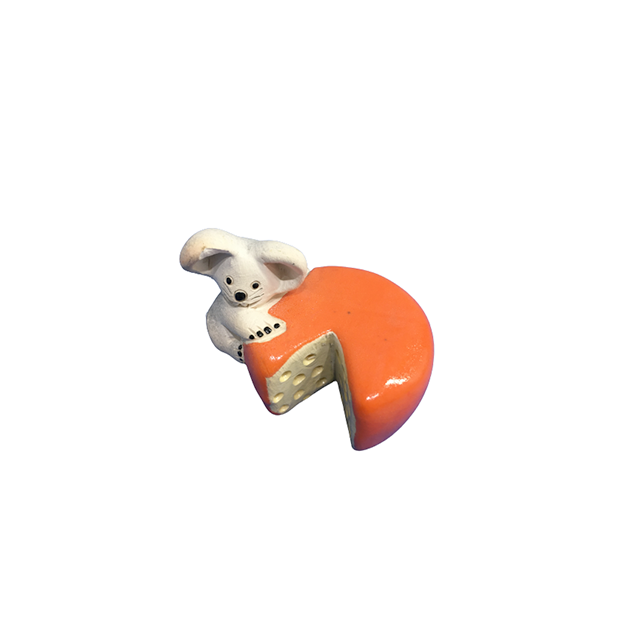 ウルグアイのリサ・ラーソン!?こと陶器や彫刻で知られるブランド「アーテサニア・リンコナダ」。特に動物をモデルにした70年代から80年代のビンテージなラインナップが秀逸なんですが、こちらはネズミとチーズという最強コンビの彫刻フィギュアになります。前歯2本のキャッチーなネズミと本格チェダー?チーズのオレンジが冴えまくっています。キッチンにでも置いて人生論を語りかけて下さい!左耳の表面が欠けています。尻尾のペイントが5mmほど白く剥がれています。画像でご確認下さい。