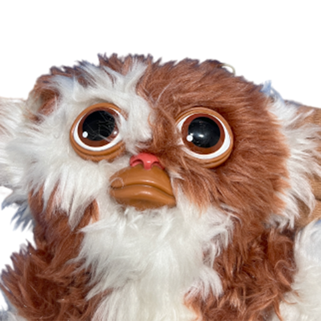 80'S SF ホラーの金字塔「グレムリン」のかわいいヒーローことギズモのプラッシュ・ドールになります。こちらは公開当時に発売されたハズブロー社製。目や鼻、口がプラスティック製で振るとキューキューと音が鳴ることでお馴染みの定番アイテムです。ダメージの受けやすいプラスティック部分も比較的綺麗な状態、毛並みの色褪せも少なく、手足の糸のほつれも無く、縮みがちな耳もピーんと立った理想のコンディションです。ナンコ製とほぼ同じサイズ。離れ気味の目もジャストな間隔でめちゃくちゃ良い顔してるでしょ!右耳の裏にのりのような汚れあり、画像でご確認下さい。