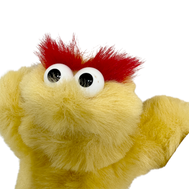 「マペッツ」「セサミ・ストリート」の神様ジム・ヘンソンが90年代に手掛けた知る人ぞ知る飛び出す絵本「スカリー・スカリー・モンスター」。絵本の可愛さはもちろん主役のカラフルなカラー・モンスター達がヘンソン・ファン即死の可愛さなんですが、何しろグッズが少ない!レア度も高い!それでも紹介したいので頑張って仕入れましたよ〜。ということでこちらはイエローモンスターことZUZUのアプローズ製プラッシュ・ドールになります。クッキー・モンスターのイエローバージョンなんて言われそうなところですが、いやいやオレンジの眉毛がそれを許さない超ポップ・アートなカラーリング!見えそうで見えない白い牙もキュート!タグ付き。