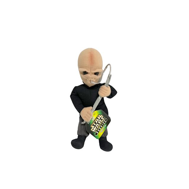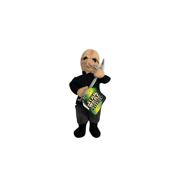 90年代に発売されたKenner社製の傑作ぬいぐるみシリーズ "STAR WARS BUDDIES"から、モスアイズリーの酒場で登場するカンティーナ・バンドことモーダル・ノーズ楽団のリーダー、フィグリン・ダンのビーンバッグ製ぬいぐるみになります。マックス・レボと同じくジャバの箱バンも経験したギャンブラーにしてビスという管楽器のスペシャリストですが、エイリアン的なルックスとJAZZのマッチングが超ヒップ過ぎて本当に最高ですね。音楽を優先する為の目立たない黒の衣装という設定も痺れます。ディスコ・ヒットした「酒場のバンド」を聴きながら抱きしめて下さい。タグ付き