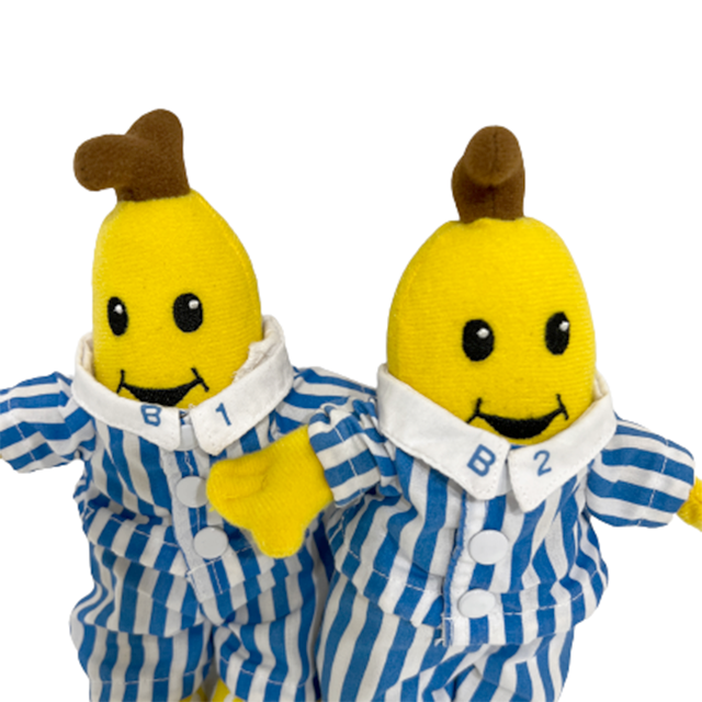 90年代を代表する子供向け番組「バナナインパジャマ」のメイン・キャラクターことB1とB2のトミー製プラッシュ・ドール・セットになります。本国オーストラリアではCGアニメ化されドラえもん級にお茶の間の人気者として定着している超人気双子!魔法の世界カドルスタウンに住むいたずらキャラを1995製という絶妙なディフォルメでぬいぐるみ化したクラシック・アイテム。当時日本でも流通されましたが、こちらはアメリカを経由しビンテージ・ムードを高めたレア・セットとなります。