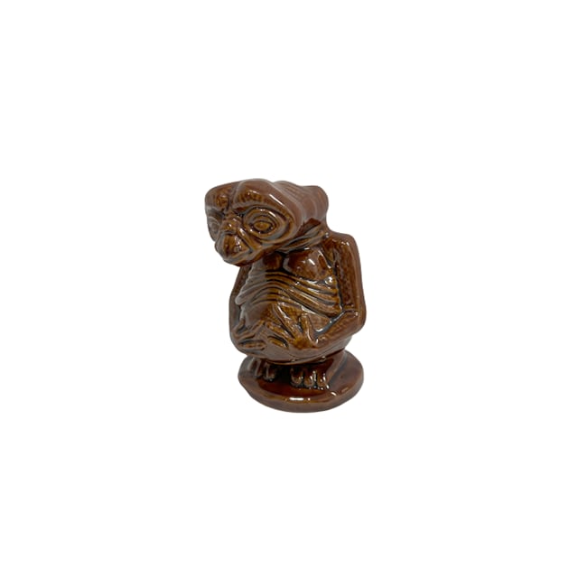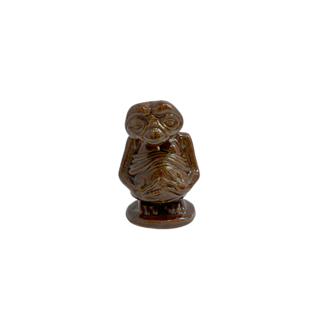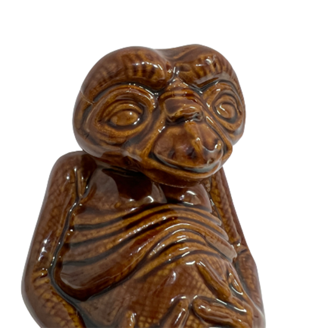 SFアドベンチャー・ムービーを象徴するスピルバーグ・クラシック"E.T. The Extra-Terrestrial"から、上映当時の80年代に作られたブートレグ・スタイルのセラミック製貯金箱になります。個人の嗜好がモロに反映したハンドメイド感が功を奏したプレーン・ブラウン一色塗り!目も塗らない!そして艶々の光沢感!ほぼお婆ちゃんな猫背とほぼお婆ちゃんな微笑み顔でお婆ちゃんE.T.のレジェンドと言ってしまいたい最高アイテムとなります。やや右に傾いた重心も大きすぎないサイズ感も良し。陶器スタチュー系もスターウォーズ・シリーズを筆頭に円安インフレの影響なのか謎に高騰しておりますので、今が買いな気がしております。