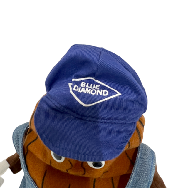 カリフォルニアに本社を置く世界最大のアーモンド加工販売企業「BLUE DIAMON」社のプロモ・プラッシュ・ドールになります。こちらは更にレアな大きい方の9インチ・サイズになります。西海岸の風をいっぱいに浴びて香ばしく色付いたアーモンド君が、オーバーオールにブルーのスニーカー、ロゴ入りのキャップでオールド・スクールB-BOYスタイルに決めた最高品となります。小さい方は可愛いですが、目の間隔が離れフォルムもぼってりした大きいサイズの方は、更にヒップ・ホップ感が増しより一層ブレイキンな毎日が過ごせてしまうモア最高品となります。BLUE DIAMONのロゴもシンプル・イズ・ベストここにありけりでかなり最高です。
