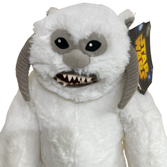 スター・ウォーズ屈指の人気マイナー・キャラ!雪の国ホスの肉食獣こと主人公ルークを苦しめた白い怪物ワンパ!カリフォルニアのディズニー・ストア限定で発売されたこちらは、さすがにもってこいの素材だけに、過去のグッズをごぼう抜きした屈指の傑作ぬいぐるみとなりましたよ!もちろん迫力のビッグ・サイズ!真っ白の毛むくじゃらボディというビッグ・フット・マナーと、こめかみから口に向かって楕円に伸びた2本の角、シーズーのような可愛いくて獰猛な犬顔。うんざりするほどの猫背も可愛さ溢れます!触り心地も超絶ふわふわでこの季節に申し分無しの仕上がりです。タグ付きの綺麗な状態です。一家に一ワンパ!