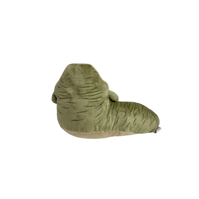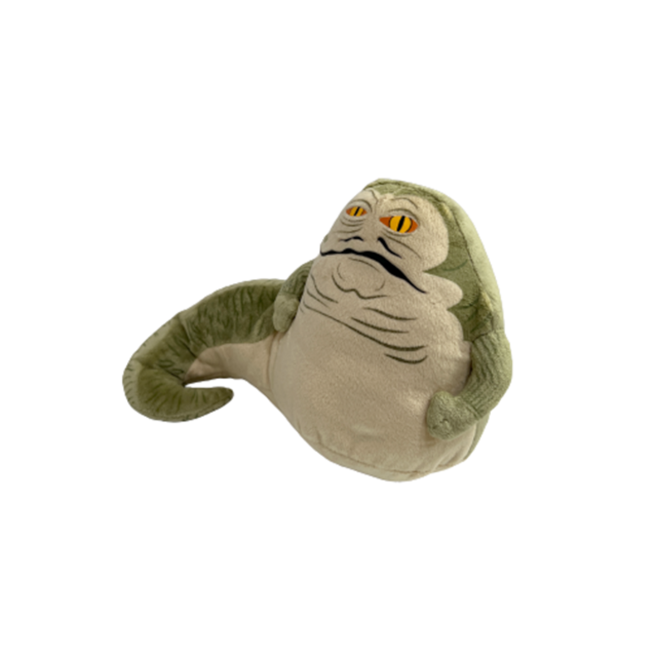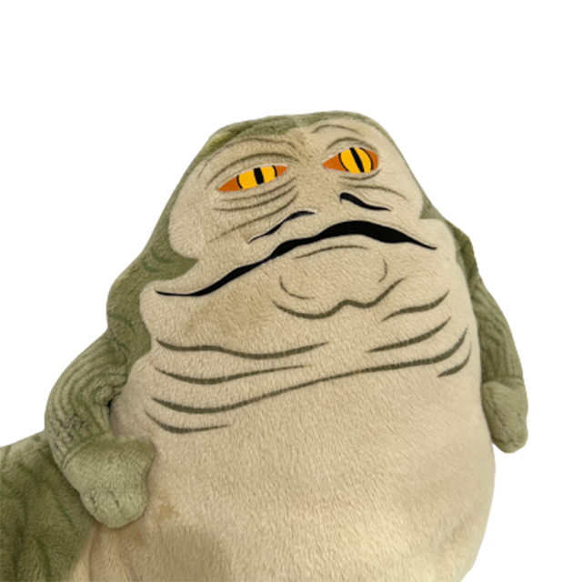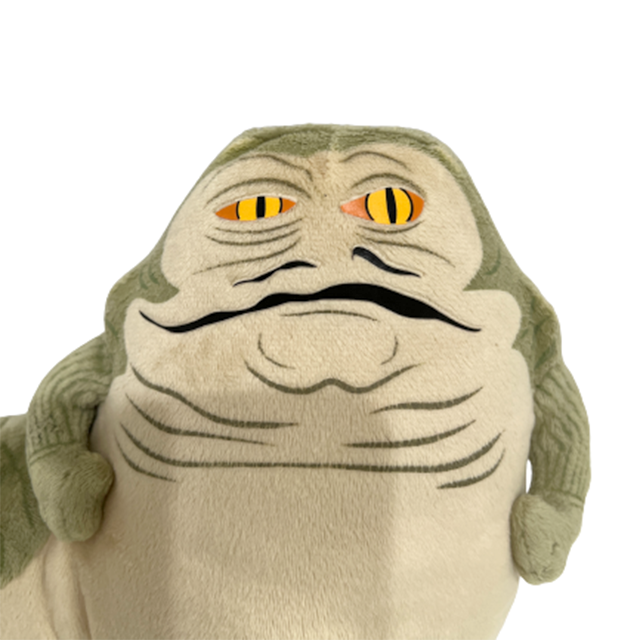 こちらもスター・ウォーズには欠かせない大悪役。惑星タトゥイーンに宮殿を構え銀河を取り仕切る犯罪組織ハット・カルテルのボスとして君臨するジャバ・ザ・ハット!悪行の限りを尽くしてきたナメクジ星人も最終的にはレイアに鎖を巻きつけられてショボく窒息死してしまう最高のキャラをフカフカのソフト素材でぬいぐるみ化に成功!悪い!もの凄く悪い!でも可愛い!フーカ・パイプを持っていないところは残念ですが、目や鼻の穴なんかの左右対称でないところ(大事!)もバッチリ再現のいい表情!両腕が短いのも最高となります。