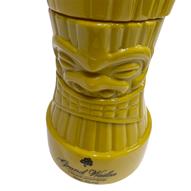 ハワイはマウイ島屈指の高級リゾート・ホテル「グランド・ワイレア・ア・ウォルドーフ・アストリア・リゾート」のプラスティック・ティキ・バンクになります。サフラン・イエローに輝くボディは光沢のあるハード・プラスティック製で艶やかに輝き、オリジナルのTikiフェイスはこれでもかとエキゾチックに仕上がっております!最高&最高&ビッグ・アロハな貯金箱!Tiki本来の守り神としての役割はもちろん、ビッグ・アロハなトロピカル・ムードを一気に盛り上げますよ!普通に宿泊すれば一泊10万円越えの高級ホテルですが、このTikiバンクさえあればもう泊まる必要はありません!気分はマウイへトリップ!筆記体ロゴの刻印もエキゾ・ナイスです!