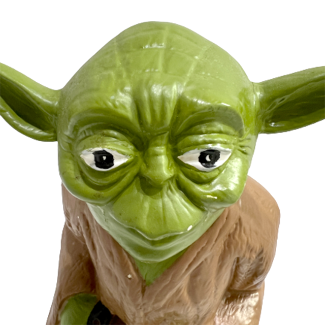 SIGMA社製と同じく1983年に作られたと思われる、レアなヨーダのセラミック・スタチューになります!素人DIY感あふれてしまっているハンド・ペイントの甘さもさることながら、着物姿の小さいヤクザのおっちゃん的な任侠感が漂うブート界ぶっちぎりのムード!誠にゼツいポージング、ほのかに漂う介護の香り、伊武雅人風のマスクや短いギマー製の杖もツボ!何よりヨーダなのにデカい!というのも最高となります。ダゴバからあなたのお部屋をフォースでいっぱいにしてくれますので、毎日仕事の愚痴や対人関係の愚痴、家族の愚痴などを吸い取ってもらいましょう。