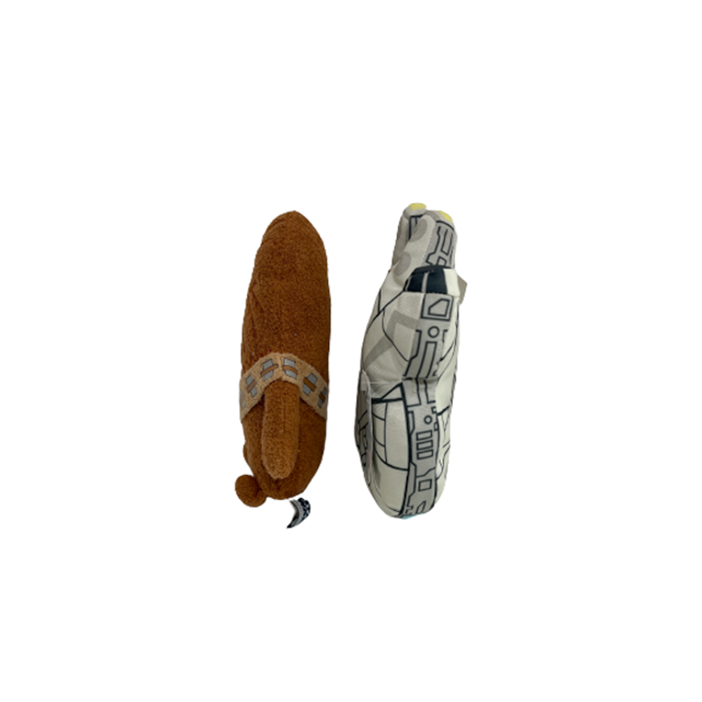 ディズニーから発売されたコミック・イメージ・シリーズのチューイとミレニアム・ファルコンのぬいぐるみになります。ミレニアム・ファルコンのぬいぐるみが既に希少ですが、ミニ・サイズというのが更にキュート!ポリエステル・ファイバー素材のつるりとした素材感も良し!ミレニアム・ファルコンの副操縦士チューバッカはナイスなディフォルメがハマったアニメ顔に、タオルとフリースの間のような素材感がめちゃ気持ちよし!ファルコンとも同サイズで下半身にビーン・バッグが詰まっており自立するところも最高となります。