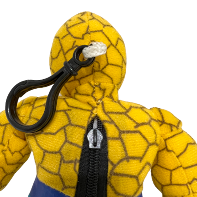 マーベル「ファンタスティック・フォー」のナイーヴで力持ちなヒーローことザ・シングのぬいぐるみキーホルダーになります。ハルクと同じくパワー型なのにパワーをオフできず岩石男の姿のまま日常をおくるというところも最高となるTHING。希少なぬいぐるみバージョンですがディフォルメがめちゃ最高となります。オレンジ・イエローな岩石ボディと市民から不気味に見られ日常生活に馴染めないコンプレックスが表情に出てしまっている捻くれた顔つき!そして裸はさすがにという道徳心の象徴ブルーのパンツに4と書かれたベルトまで!THINGというヒーローを部屋に置きこれからの人生を共におくりましょう!後ろのジッパーの取っ手が無くなっています。ジッパーは開閉できます。