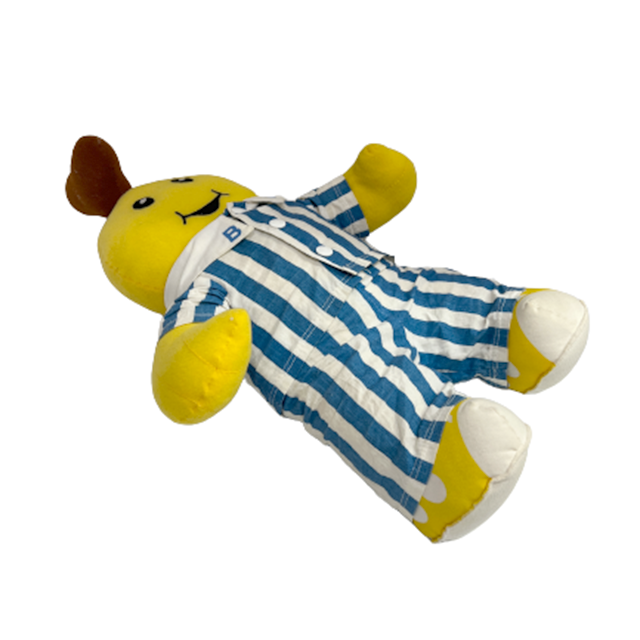 90年代を代表する子供向け番組「バナナインパジャマ」のメイン・キャラクターことB1の12インチ・プラッシュ・ソールになります。オーストラリアのmaritel社製の珍しい一品。個体差のあるぬいぐるみの中でもうっかり顔にワタを詰め過ぎたせいで、顔パンパンのあんぱんパンマンみたいになっていた為、すかさず捕獲しました!後ろ姿なんてもう誰やねん!て感じのまん丸さで最高です!ストライプのパジャマと無邪気で悪い顔、バナナのヘタはちょんまげみたいで角度を選ばず最高となります。
