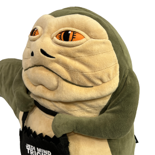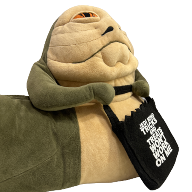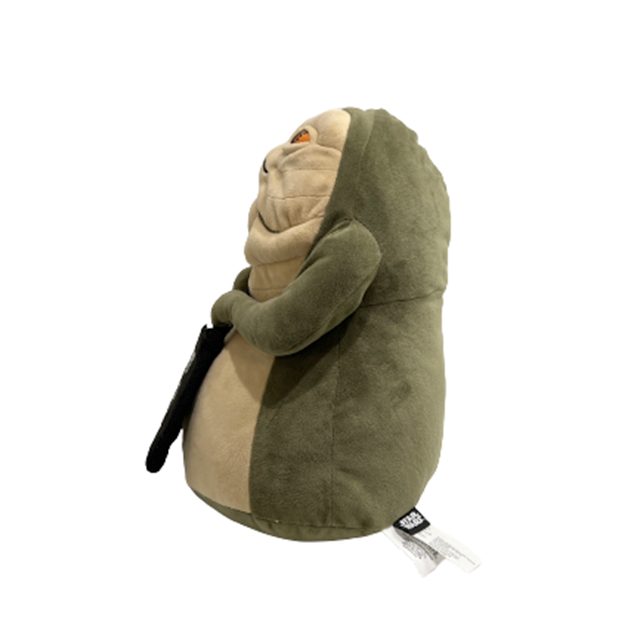 遂に再入荷!ポップアップで売れてしまっていた、スター・ウォーズぬいぐるみ史上最大級!ジャバのぬいぐるみとしては間違いなくナンバー・ワンのドデカさ!惑星タトゥイーンに宮殿を構え銀河を取り仕切る犯罪組織ハット・カルテルのボスとして君臨するジャバ・ザ・ハットをハロウィン仕様のポシェット付きでフッカフカのソフト・プラッシュ・ドール化!悪い!もの凄く悪い!でも可愛い!キモカワというギリギリのところを見事に再現!後ろ姿はほとんどおばさん!ポシェットを持ったナメクジおばさんの大きなぬいぐるみです!底面にプレートが入っているので、これぞジャバ!というポージングであなたを見守ってくれますよ〜。一生の友達としてどうぞ。尻尾など多少コンパクトに折り曲げて発送します。ご了承下さい。