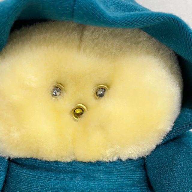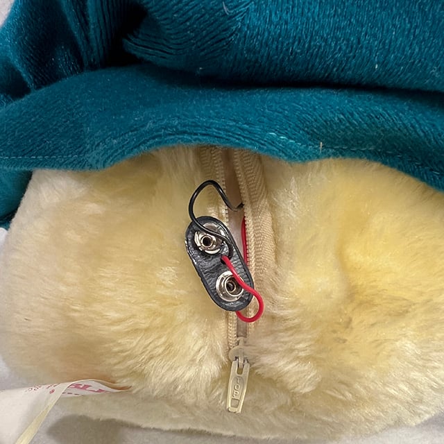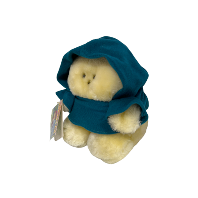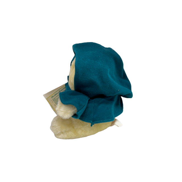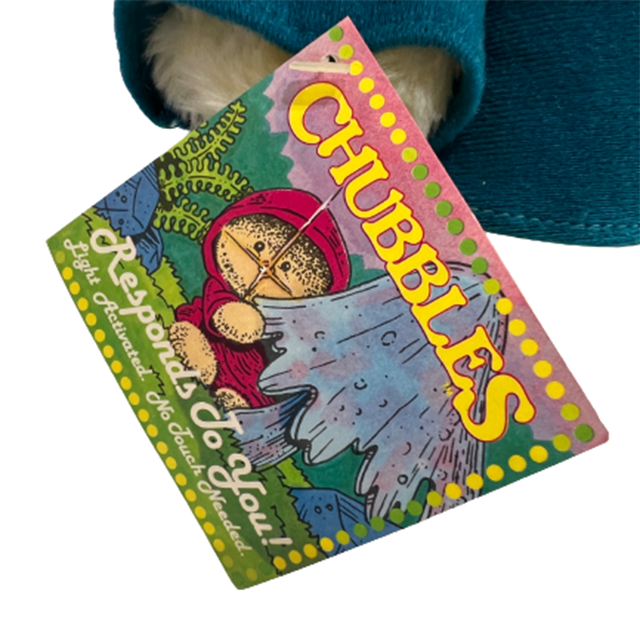 80'S アメリカン・トイの良心ことAnimal Fair社の大ヒット商品"Chubbles"のぬいぐるみになります。リンクの当時のCMを見てもらえばわかるように、ファービーよりも早かった、サウンドとフラッシュで応えてくれるコミュニケーション・プラッシュ・ドールで、こちらはカラーバリエーションが豊富なチャブルスのタグ付きグリーン・バージョンになります。ジェダイを彷彿とさせるフード付きコートにイウォークのようなモコモコ毛むくじゃらボディ、ライトとして発光するつぶらな瞳と鼻にまんまると丸いフォルムで80'Sど真ん中&最&高となります!お尻の画像の可愛いこと!背中の電池コードは健在ですが動作未確認です。