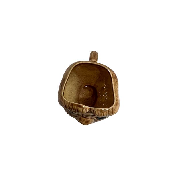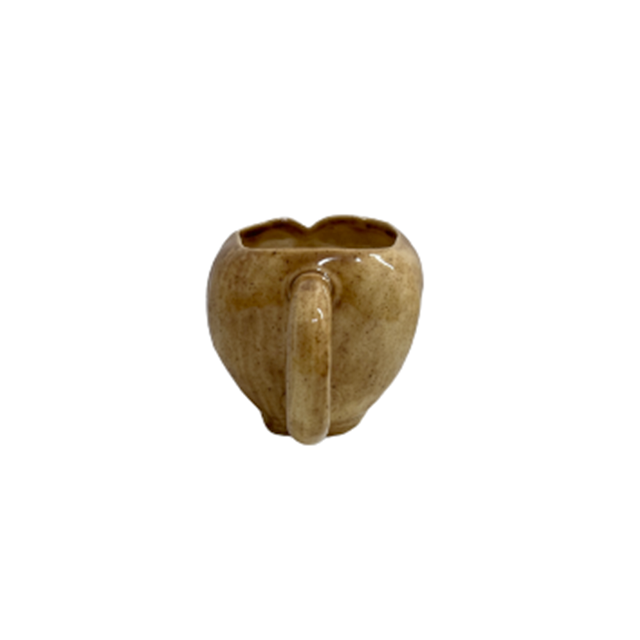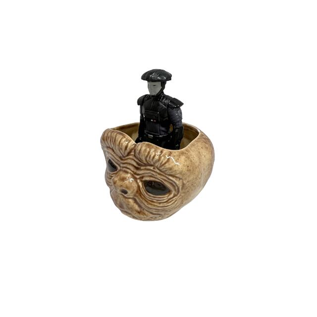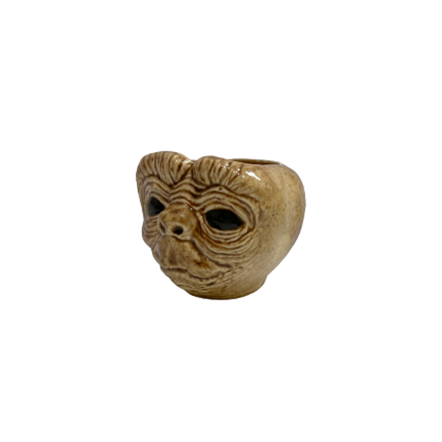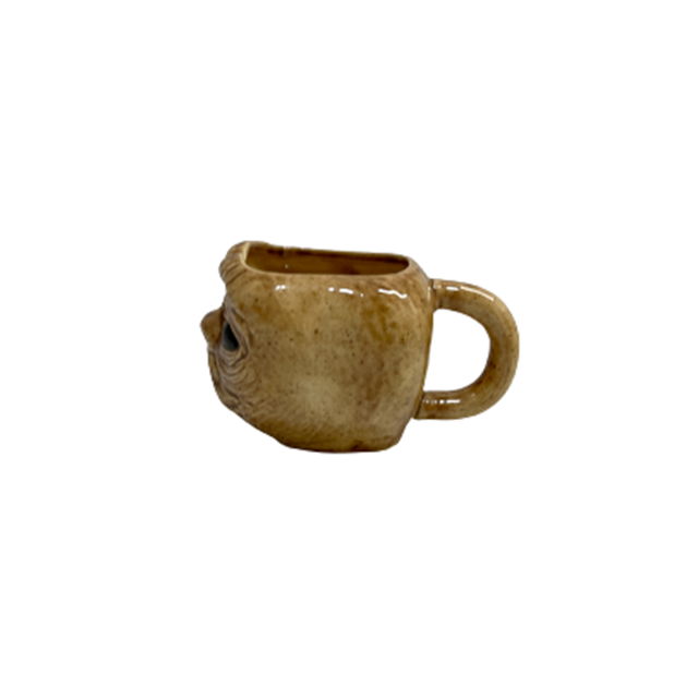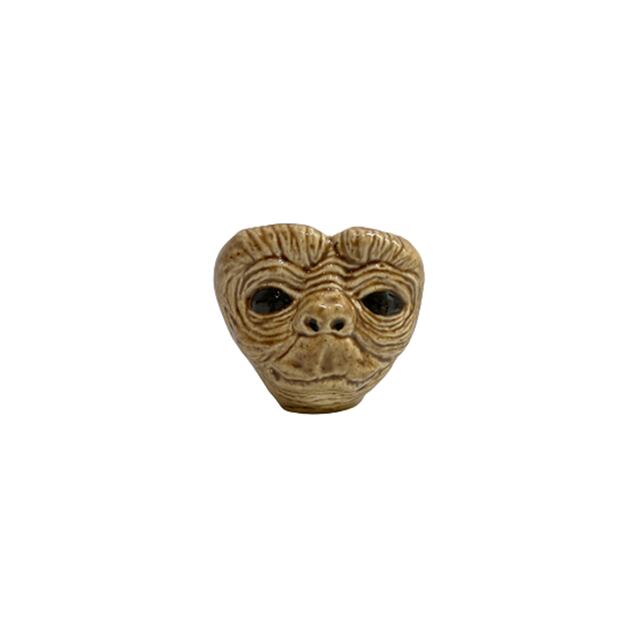 E.T.のハンドメイド製セラミック・マグ・カップになります。造形が秀逸というか表情もなんともいえない優しさで釉薬の艶も相まって絶妙な仕上がりに。作り手の思い切りが出た黒目一色塗りというのも最高となります。底面には"Kelly"というネームの刻印も入れてあり、Kelly本人のものかKellyさんへの贈り物か甘い想像も膨らみますよ!フォルムもサイズ感もバッチリなのでオブジェにして毎日お祈り、または脳天に小物をしまう感覚でも最高が訪れます。もちろん一杯のコーヒーでも至福の1日へ!