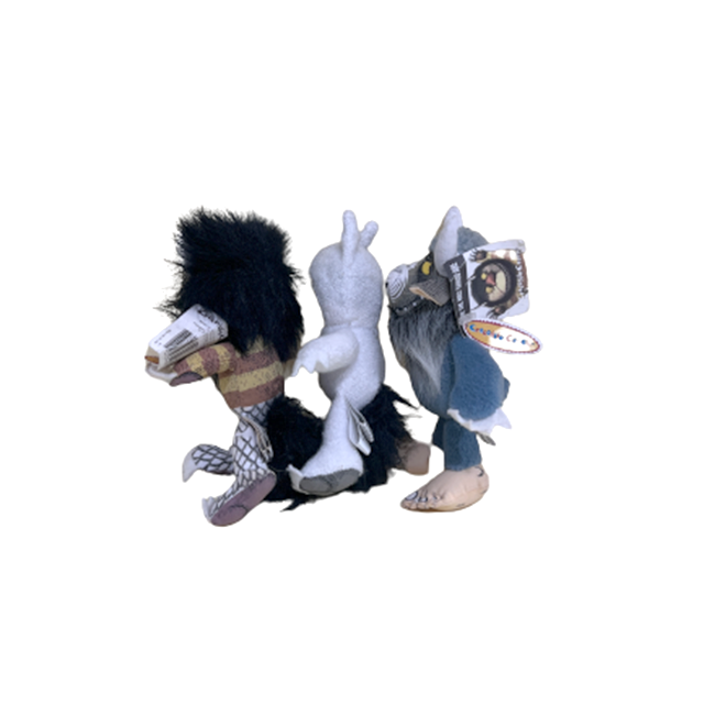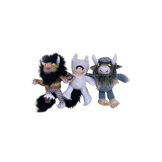 モーリス・センダックのロングセラー絵本『かいじゅうたちのいるところ』からクロコダイル・クリーク社製のミニ・プラッシュ・ドールのセットになります。モイシャとバーナードはタグ付きとなります。チッピーが欠けておりますが、意外と3人での収まりも良きという感じです!マックスの頭部から肩にかけて薄い沁みがあります。画像でご確認の上ご不明な点はお問い合わせ下さい。