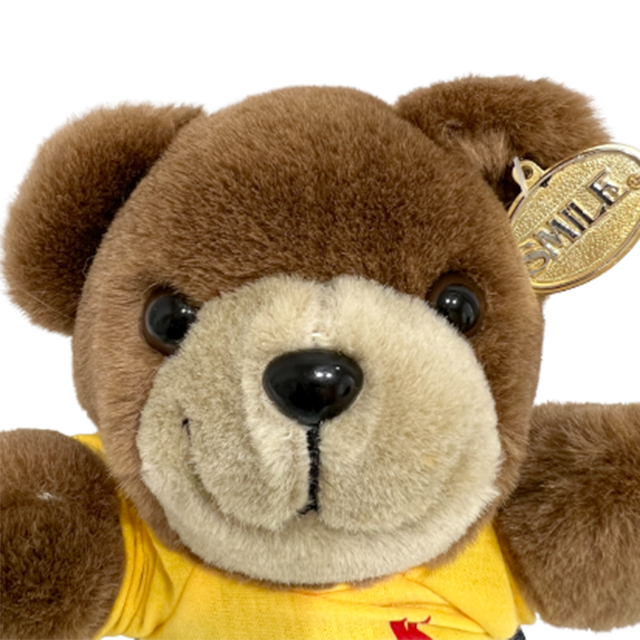 春になって熊も冬眠から目覚めますよ!ということで当店一押しのクマのぬいぐるみです!世界のKodak社のプロモーション用に作られた可愛い過ぎるクマちゃん!90年製という時代感もバッチリ!kodakのカメラこそ持っていませんが(何故!?)Kodak Filmロゴが胸元に入った黄色いTシャツにデニム・ジーンズがビンテージ・アメリカン・スタイルど真ん中の可愛さ!80'sぬいぐるみの良心"The World Of Smile"社製とあって口角上がりっきりの超ナイス・スマイル!目と鼻はプラスチック製。"SMILE"ロゴのゴールド・タグも付いています!Kodakと言えばKolorkinsが有名ですが、いやいやいや!テディー・ベアでしょぬいぐるみは!お部屋の永久ボランティアとして最高となります。