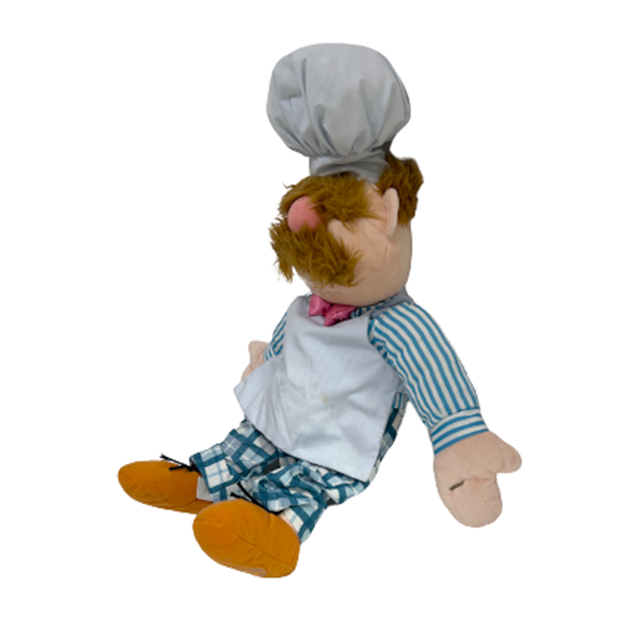 "SESAME PLACE"限定のプラッシュ・ドール・ラインの"MUPPETS"版と言える、ディズニー・ストア限定レア・シリーズから、超人気マイナー・キャラ"SWEDISH CHEF"の特大プラッシュ・ドールになります!マペッツと言えば彼!というコアなファンも多いんじゃ無いでしょうか?一度観たら忘れられない適当で陽気なキャラ!スウェーデン民謡的なテーマ曲を歌詞というかスキャットで適当に歌い最後にスプーンを投げ捨てるのが永遠に最高!目が隠れるほどの眉毛とモジャモジャの髭、ピンク色の花やスカイブルー・ストライプのコック服まで見事に再現した最高アイテムとなります。足裏にディズニー・ストアのパッチ付き。エプロンに汚れあり(画像参照)。