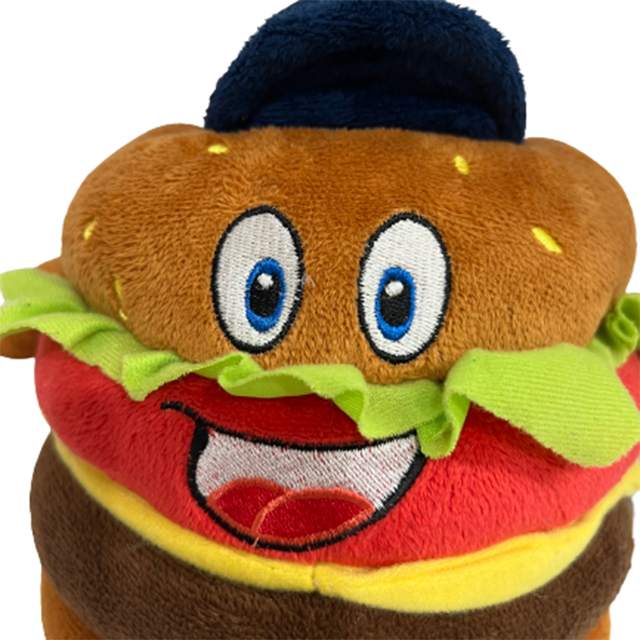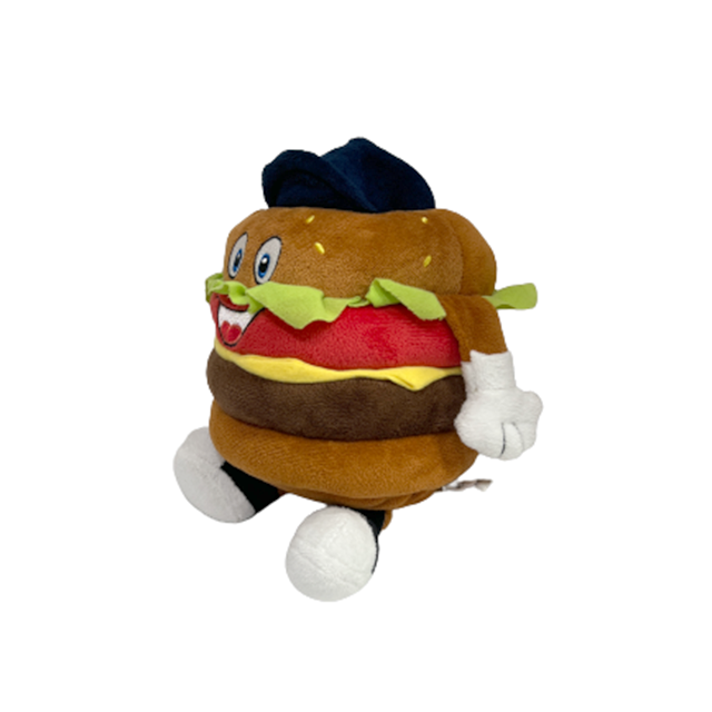 ハンバーガー・トイズの王様!と言ってしまいたい超最高レア・アイテム。MLBのファン・グッズとして作られた「フォーエバー・コレクタブル」屈指のキラー・アイテムことハンバーガー・シリーズのリーハイバレー・アイアンピッグス・バージョンになります。当店でもマスコット・キャラのディギー・ザ・ホット・ドッグのぬいぐるみが入荷しておりましたが、マイナーリーグといえど屈指の人気チームの為、こちらもなかなかに出てきません。胡麻つきバンズには目!トマトには口!レタスの上からは両腕が!バンズの下からはスニーカー着用の足が!更にはチーム・ロゴ入りのキャップまで被ってしまったオールド・スクール・ラッパー・マナーのヘッズ系ハンバーガー・プラッシュ!顔が上に集中してデブ・フォルムになっているのにも注目したいチューイ的センス全部盛りの当店最高偏差値を獲得してしまいました〜。いや〜お店やってて良かった。最高。右足後ろにほつれあり、画像でご確認下さい。