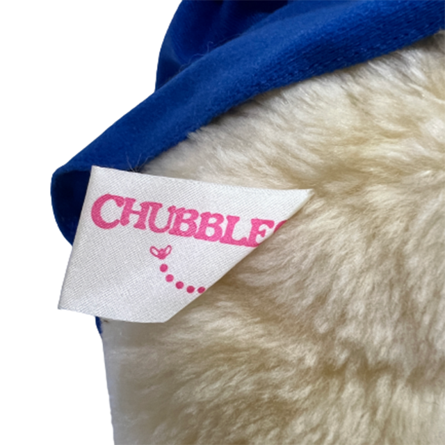 80'S アメリカン・トイの良心ことAnimal Fair社の大ヒット商品"Chubbles"のぬいぐるみになります。リンクの当時のCMを見てもらえばわかるように、ファービーよりも早かった、サウンドとフラッシュで応えてくれるコミュニケーション・プラッシュ・ドール!チャブルスのパッチ付きブルー・バージョンになります。ジェダイを彷彿とさせるフード付きコートにイウォークのようなモコモコ毛むくじゃらボディ、ライトとして発光するつぶらな瞳と鼻にまんまると丸いフォルムで80'Sど真ん中&最&高となります!お尻の画像の可愛いこと!背中の電池コードは健在ですが動作未確認です。