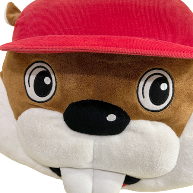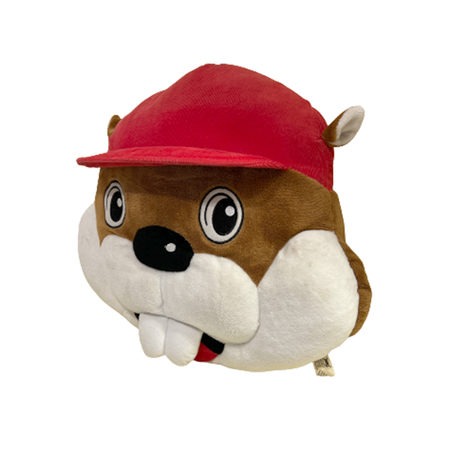 テキサスが誇る名物ガソリン・スタンドとコンビニのチェーン『バッキーズ』のマスコット・キャラクター、ビーバーのバッキーのぬいぐるみ/クッションになります。バッキーズと言えばコストコ級の広いフロアに鬼のグッズ展開で知られますが、こちらはバッキーの良さが爆発したヘッド・タイプの特大ぬいぐるみ。赤いキャップからのぞく小さい耳、二本の前歯とぷっくり膨らんだほっぺた、ふわふわの素材感でこれでもかと最高となります。