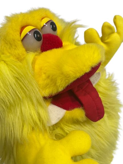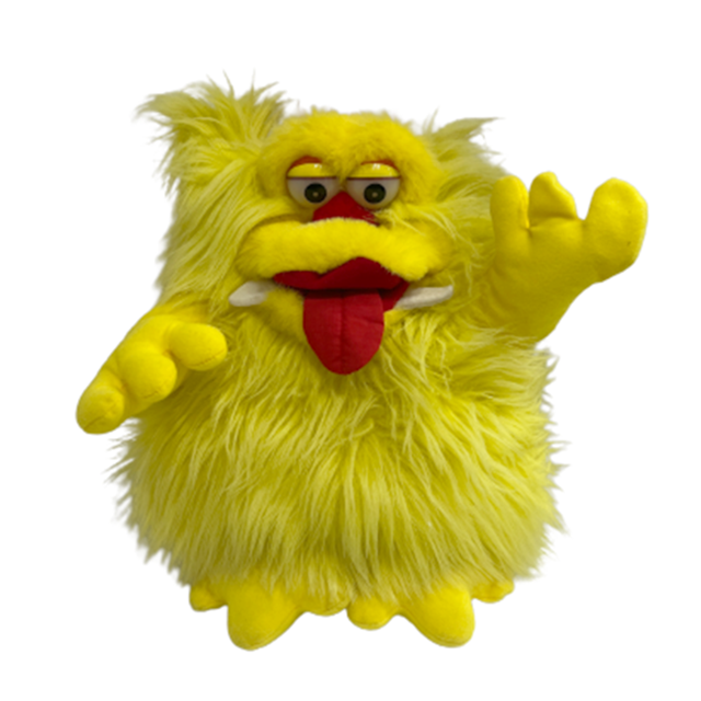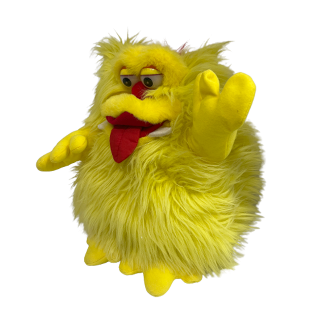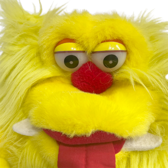80's モンスター・プラッシュの金字塔「ファーブルス」。こちらはイエロー・カラーの"KIP"のハンド・パペットになります。アメリカ国内で50店舗をかまえるカーソンズというデパート・チェーンにて80年代に販売されていたビンテージ・アイテムとなります。ジム・ヘンソンとマイペット・モンスターの中間というポップなバランスと清々しいカラーリング、15インチという特大サイズで背中から手を入れて遊べるところ、暗闇で光るプラスチック蓄光の目まで、抜け目なしのクラシック・アイテムです。