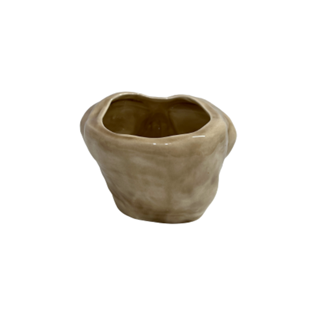 E.T.のハンドメイド製セラミック・プラントになります。こちらは初の入荷バージョン。珍品です。オリジナルのマスクに忠実でありながら愛くるしい表情を上手く陶器に落とし込んだ素晴らしい仕上がり。ミルクティーのようなクリーミー&部分的にマーブル風のヨーロピアンなカラーリングも秀逸。釉薬のてかりも美しいです。フォルムもサイズ感もバッチリなのでオブジェにして毎日お友達に、またはお気に入りの観葉植物や小物入れにしてもエブリデイ最高が訪れます。
