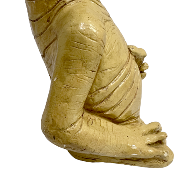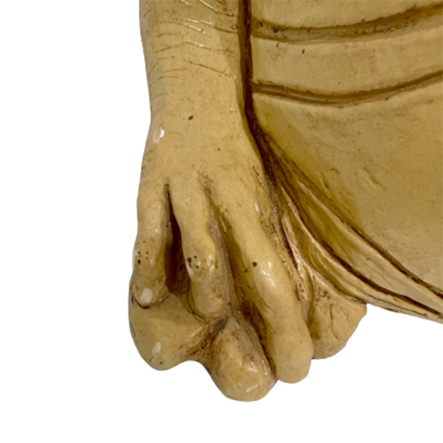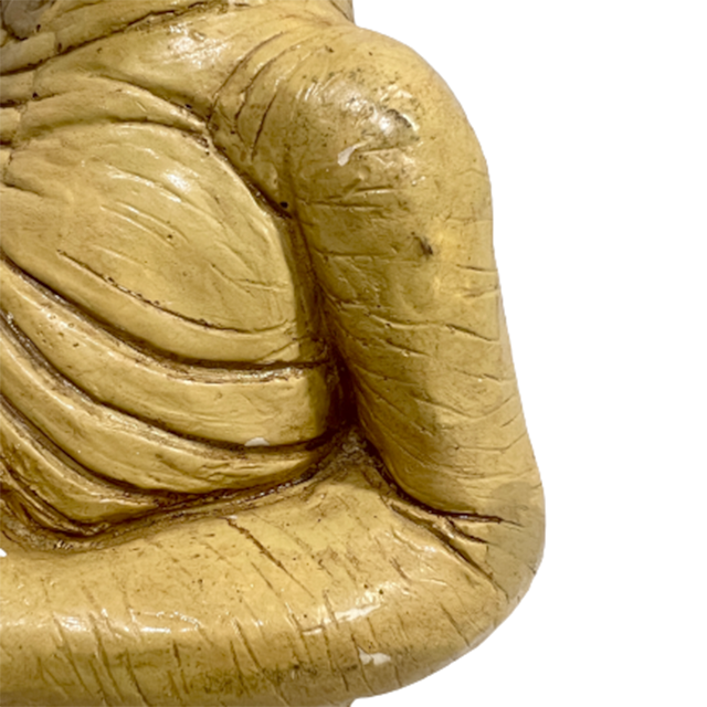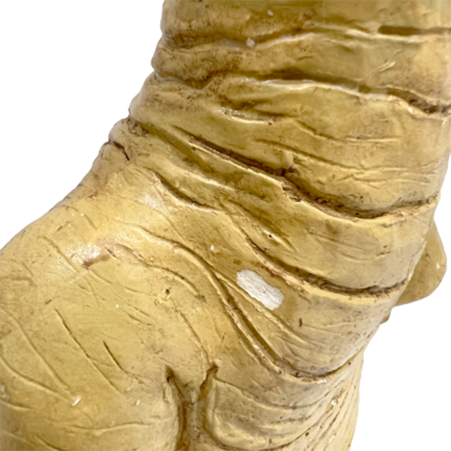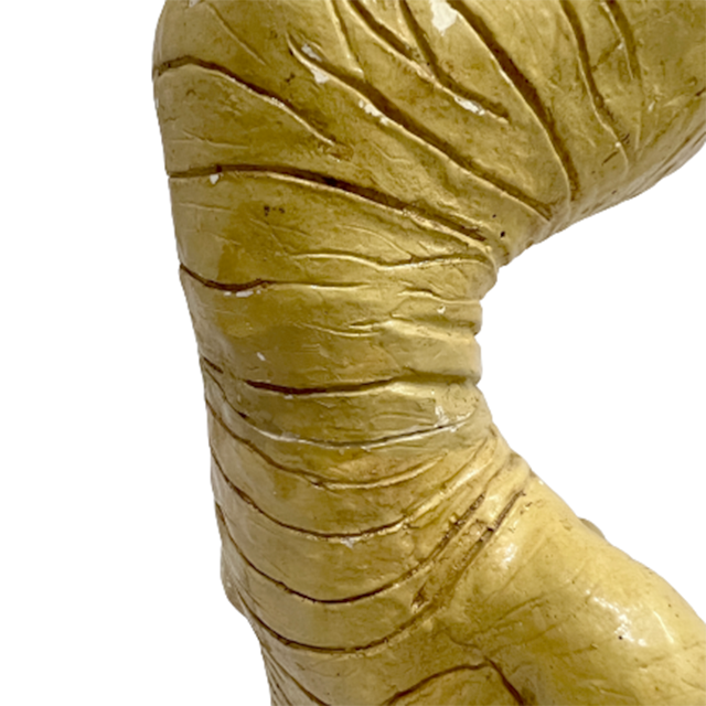 セラミックE.Tの多くは中身が空洞の軽いタイプが主流ですが、こちらは珍しい石膏タイプのヘヴィー・オブジェ。どっしり重いです。よくある"型"にペイントするのではなく、粘土細工のように形から作ることでアート・サイドに振り切ったリアリティE.T.に仕上がっております。首にかけての美しいライン、太陽の塔的な太郎感も彷彿とさせるフォルムも最高、清いほどのベージュ・ワントーン・カラー、ボディの荒々しいシワ、迫力のサイズ感、ブルーの流し目など、すべてにパワーが漲っております。首元にリペアの跡が見られるので特価です。