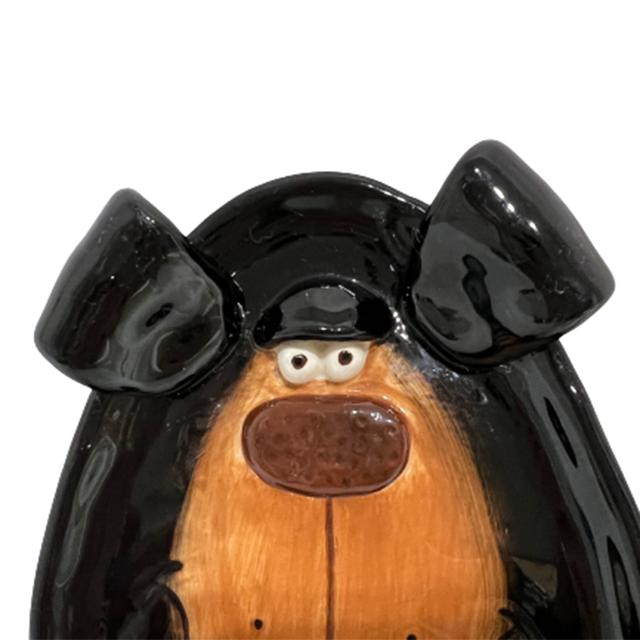 ティディベアなどで有名なアメリカのラス・ベリー&カンパニー社製の陶器製犬猫シリーズから、ブラック・ドッグの壁掛けプレートになります。平置きして小物入れにしてもグッド。