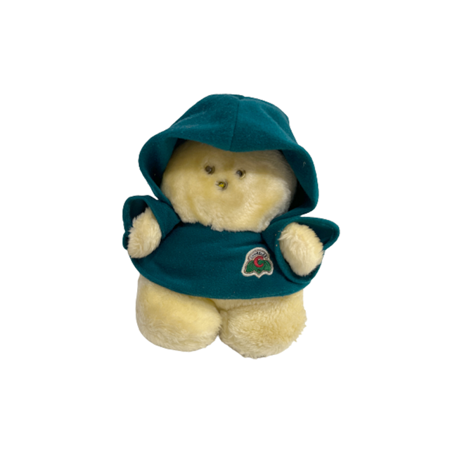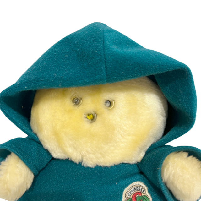 80'S アメリカン・トイの良心ことAnimal Fair社の大ヒット商品"Chubbles"のぬいぐるみになります。リンクの当時のCMを見てもらえばわかるように、ファービーよりも早かった、サウンドとフラッシュで応えてくれるコミュニケーション・プラッシュ・ドール!チャブルスのパッチ付きグリーン・バージョンになります。ジェダイを彷彿とさせるフード付きコートにイウォークのようなモコモコ毛むくじゃらボディ、ライトとして発光するつぶらな瞳と鼻にまんまると丸いフォルムで80'Sど真ん中&最&高となります!お尻の画像の可愛いこと!背中の電池コードは健在ですが動作未確認です。