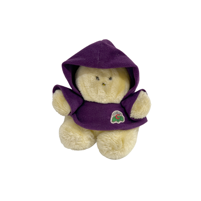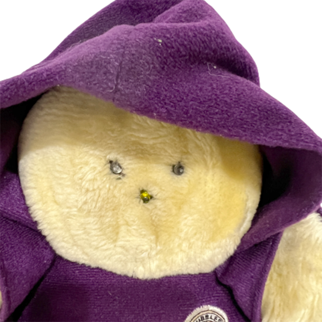 80'S アメリカン・トイの良心ことAnimal Fair社の大ヒット商品"Chubbles"のぬいぐるみになります。リンクの当時のCMを見てもらえばわかるように、ファービーよりも早かった、サウンドとフラッシュで応えてくれるコミュニケーション・プラッシュ・ドール!チャブルスのパッチ付きパープル・バージョンになります。ジェダイを彷彿とさせるフード付きコートにイウォークのようなモコモコ毛むくじゃらボディ、ライトとして発光するつぶらな瞳と鼻にまんまると丸いフォルムで80'Sど真ん中&最&高となります!お尻の画像の可愛いこと!背中の電池コードは健在ですが動作未確認です。