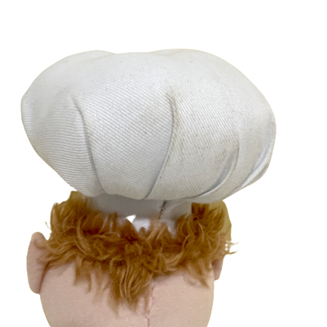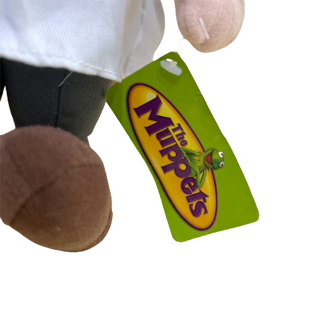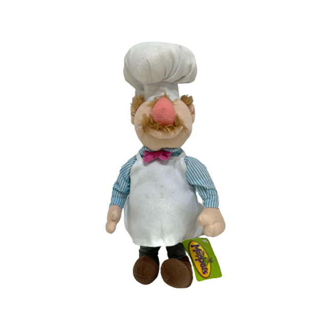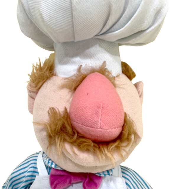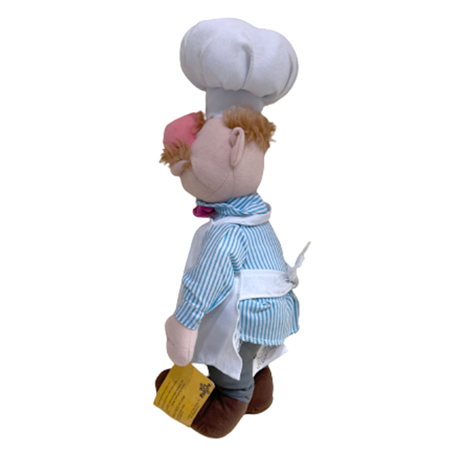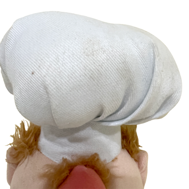 "The Muppets"の人気シェフ"SWEDISH CHEF"のToy Factory製プラッシュ・ドールになります。1975年のデビュー当時はジム・ヘンソン本人が声を担当していたことでも知られますが、マペッツと言えば彼!というコアなファンも多いんじゃ無いでしょうか?一度観たら忘れられない適当で陽気なキャラ。スウェーデン民謡的なテーマ曲を歌詞というかスキャットで適当に歌い最後にスプーンを投げ捨てるのが永遠に最高。目が隠れるほどの眉毛とモジャモジャの髭、ディズニー・ストア・バージョンよりも栗色でこちらもいい味出しております。トレードマークのスカイブルー・ストライプのコック服やピンクの蝶ネクタイまでこちらもひたすら最高となります。タグ付きのグッドコンディションですが、エプロンや帽子など白い部分に所々汚れがあります。