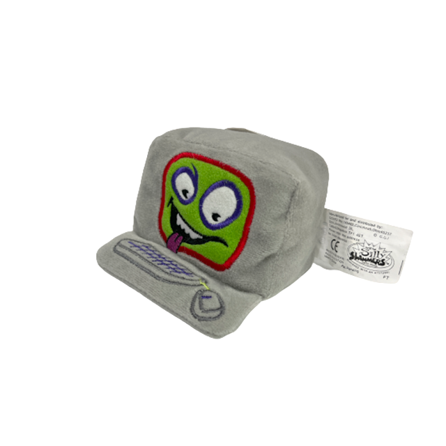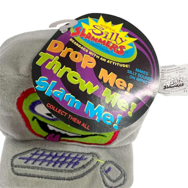 ぶつけて遊ぶ 90'S ミニ・ビーン・バッグ・クラシック"Silly Slammers"シリーズから、1996年製オフィス・スラマーズ"Computer"のPlush Dollになります。ebayの"Meg A. Herz"とほぼ同サイズのデスクトップ・パソコン・タイプ、90年代という時代性も激しくリンク、グレー・ボディという初期Apple感にライムグリーンのモニター、80'sモンスター描写の表情までかなりゼツい仕上がりの擬人化PC Plushの傑作となります。CMを見てもらえればわかる通り投げてぶつけるとサウンドが鳴るというギミック付きですが、電池が切れているのか未開封品でも作動しませんでした。画像は開封済みですが、未開封品を発送致します。