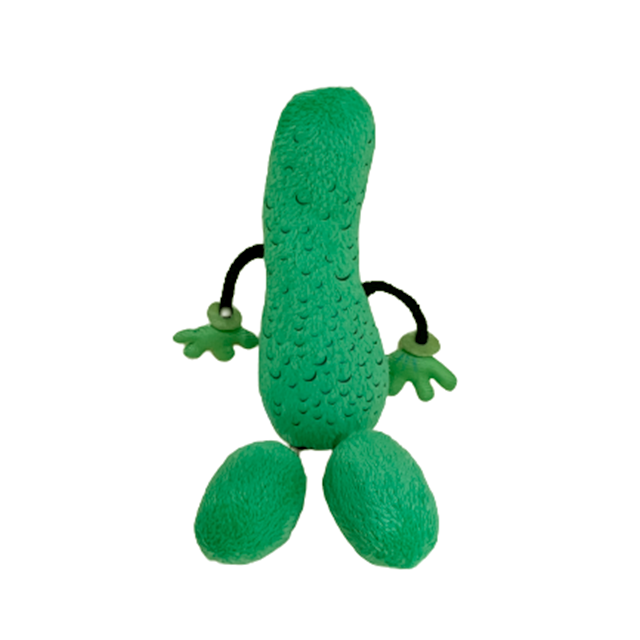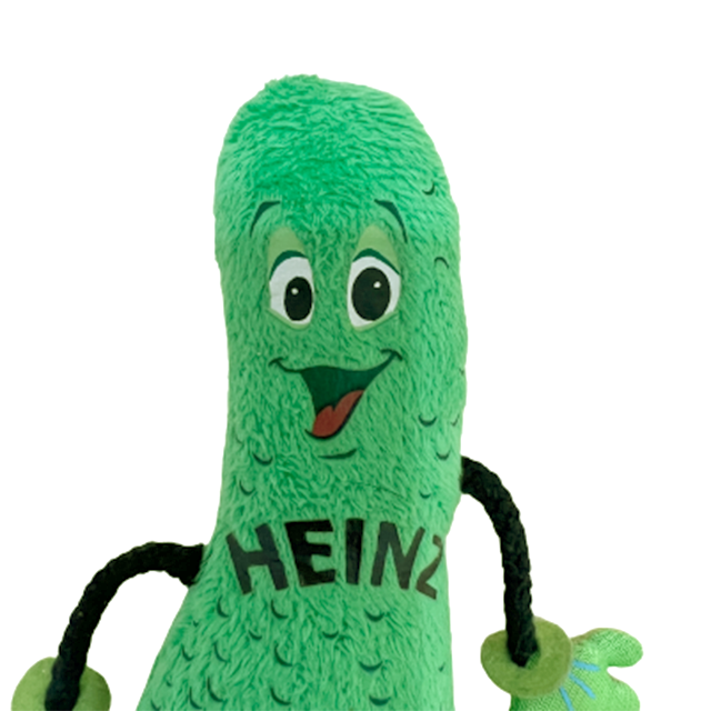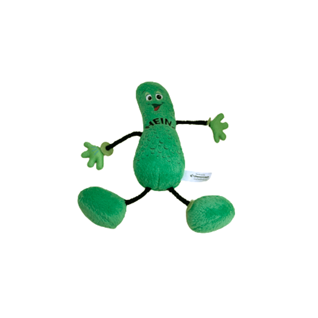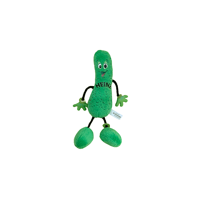 世界最大のトマト・ケチャップ・メーカー"HEINZ社"から、小ぶりのキュウリ=ガーキンを瓶詰めにしたヒット商品こと農夫のピクルス"ピックル”のキャラクター・プラッシュ・ドールになります。各キャラクターの中でも最もレア。ようやくゲットいたしました。酢漬けされる前のような鮮やかなグリーン・カラーにキュートなベイビー・フェイスが最高となります。こちらもハンバーガーにはマスト!マスタードやケチャップと揃えて自宅ハンバーガーズを結成するとさらに最高となります。可愛いCMも見てください。左足首の輪っか部分が欠品しております。
