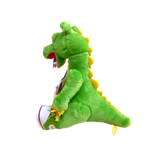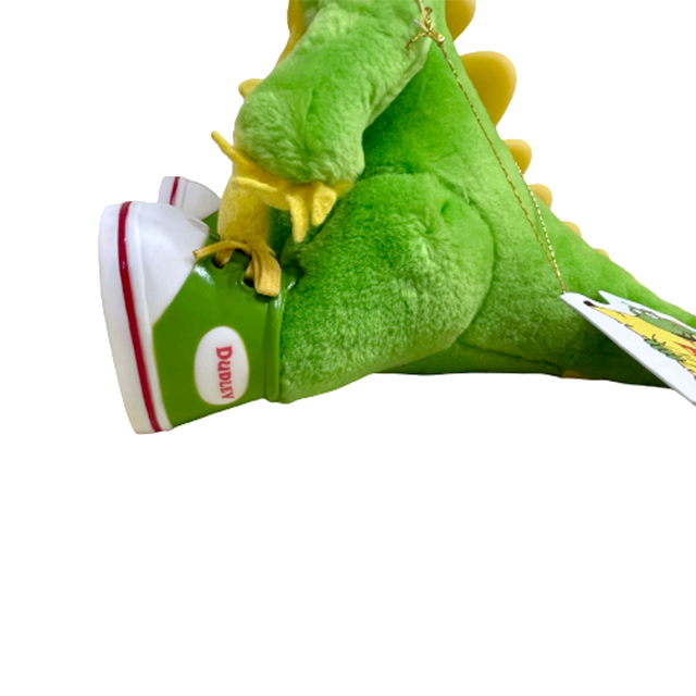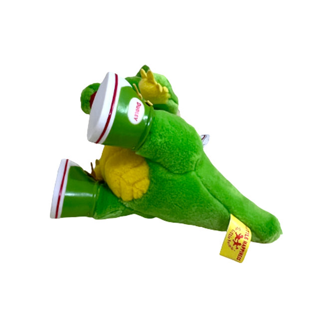 カナダの"YTV"にて93年から97年まで放送されていた子供向けテレビ・シリーズ"The Adventures of Dudley the Dragon"から主人公"Dudley the Dragon"の9インチ・プラッシュ・ドールになります。ガチャピンとマペッツの間という感じの陽気な着ぐるみドラゴンで既に最高となりますが、"A LITTLE HAPPINESS"製のこちらは代名詞となるネーム・ロゴ入りのスニーカーや2本の歯をソフビ製というこだわり、90'Sムードのタグも付いてマックス最高となります。黄緑とイエロー・カラーというとびきりポップなカラーリングにジム・ヘンソン風のギョロ目も愛くるしいです。素晴らしいコンディションでの入荷となります。