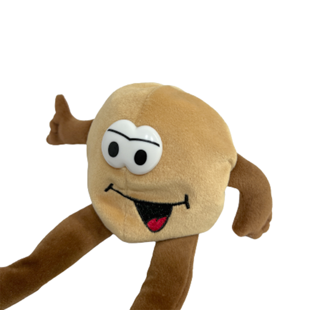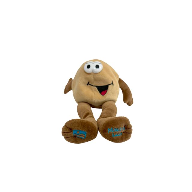 ハワイのお土産でも超お馴染みのハワイ産マカデミアナッツ・チョコレート『マウナロア』の販促用キャラクターのプロモぬいぐるみになります。これはもうシンプル・イズ・ベスト。ベージュとブラウンのボディも香ばしいカラーリングでマカデミアナッツに手足が生えてもう最高じゃないですか。背中や足の裏の刺繍も味わい深い。右手はもちろんハングルーズことシャカ・サイン。こちらは目がプラスチック製のレア・バージョン。ABCストアやアラモアナ・ショッピング・センター、ドン・キホーテなどで大量に買ってましたが、ハワイに行くまではこのぬいぐるみを抱いて我慢するしかありません。