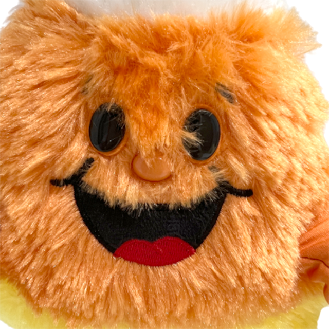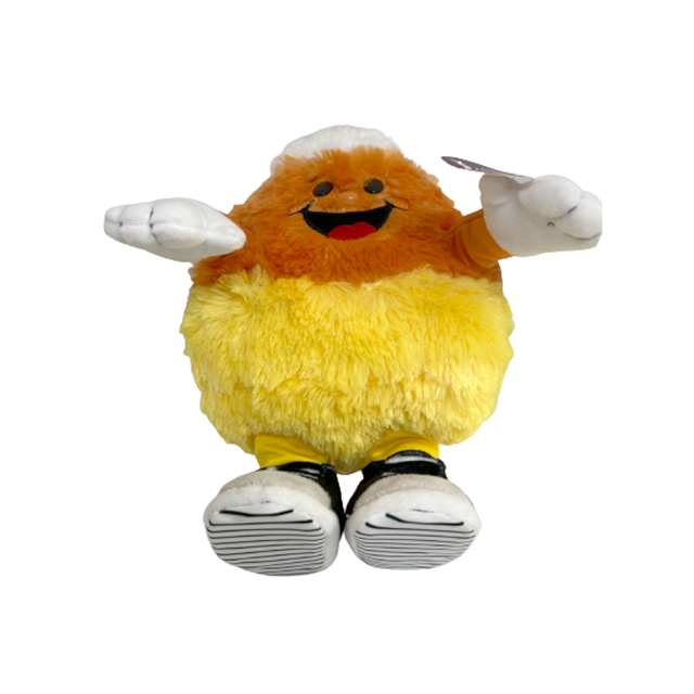 ハロウィン到来!80'S オールドスクール・ラッパー風のおむすび型モコモコ・モンスター究極のおすすめ。ハロウィン定番お菓子"キャンディ・コーン"がモンスター化した激キャワ・モンスターの紹介です。何と!左手のスイッチを押すとRUN DMC"It's Tricky"を歌いながらクネクネとダンスするパーティー・サウンド・ギミックを搭載、80年代アディダス風のイエロー・ラインが入ったオレンジ・ジャージにコンバース風のブラック・スニーカー、キャンディ・コーンのイエロー、オレンジ、ホワイトの3色カラーも相まって超ポップに仕上がってしまいました。クリスマス・オーナメント大手"Hallmark"社が手掛けているのも最高となります。これさえあれば渋谷に行く必要もなく部屋で最高のハロウィンが訪れます。タグも綺麗なまま、動作も問題無し、新品に近いデッドストック品となります。